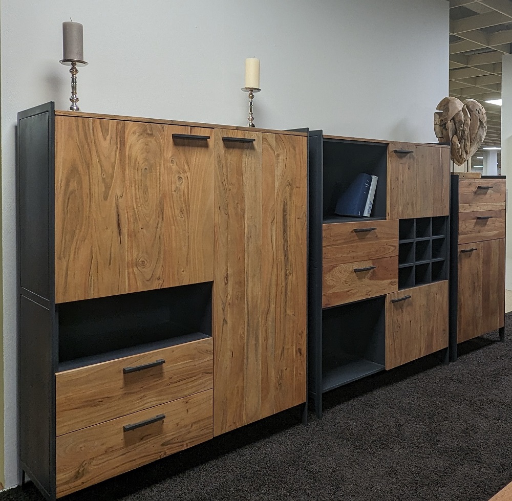 Das Sideboard der Möbelserie Kuba passt sich mit der industriell-modernen Bauart wunderbar Ihren Wohnbereich an. Mit dem zeitlosen Design und der modernen Farbkonstellation Anthrazit matt, Grau und Akazie Natur, ist das Sideboard die perfekte Bereicherung für Ihr Wohnzimmer. Das tolle Sideboard Kuba bietet Ihnen großzügigen Platz, um Ihre Dekorationen oder Ihre Bilder von Ihren Liebsten perfekt zu verstauen oder in den Raum einbringen zu können. Wenn Sie Ihren Alltag bereichern wollen, dann holen Sie sich jetzt das tolle Sideboard der Serie Kuba, denn mit diesem Sideboard können Sie nichts falsch machen.Hinweis für Massivholzmöbel:Bitte beachten Sie, dass Massivholz ein natürliches Material ist und daher einige Merkmale aufweisen kann, die seinen einzigartigen Charakter ausmachen. Massivholz kann Astlöcher, Wuchsrisse, Farbunterschiede und andere natürliche Merkmale aufweisen. Diese Unterschiede sind kein Grund zur Beanstandung, sondern zeugen von der Authentizität des Materials und verleihen jedem Möbelstück seinen individuellen Charme. Holz kann im Laufe der Zeit nachdunkeln oder aufgrund von Lichteinwirkung seine Farbe verändern. Diese Veränderungen sind normal und unterstreichen die natürliche Schönheit des Materials. Bitte zögern Sie nicht, wenden Sie sich bei Rückfragen gern an unseren Kundendienst.