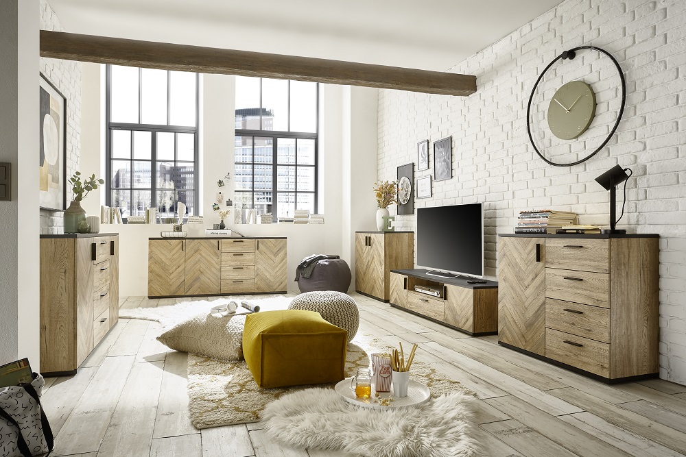 Mit dem modernen Ausführung des Lowboard V der Serie Sevilla holen Sie sich ein Möbelstück mit einem wundervollen Design in Ihr Haus. Das Lowboard V Sevilla kommt mit einer besonderen Farbkombination in Bartex Eiche und Grau. Das macht die Lowboard V Sevilla zu einem Möbelstück, das nahezu in jede Inneneinrichtung passt. Weiterhin bietet das Lowboard V Sevilla reichlich Stauraum zur Unterbringung von den unterschiedlichsten Gegenständen. Dabei können Sie auch kleinere Gegenstände wunderbar in dem Schubkasten unterbringen. Mit der modernen Optik und dem großen Stauraum eignet sich das Lowboard V Sevilla auch wunderbar zur Unterbringung von Elektronischen Geräten, und macht damit einen Sauberen unt tollen Eindruck.