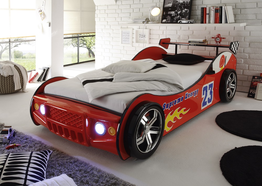 Sind Ihre Kinder absolute Fans von Rennautos und spannenden Rennabenteuern? Dann haben wir genau das Richtige für Sie als tolle ßberraschung für Ihr Kind. Das beeindruckende Rennautobett mit Leuchtscheinwerfern. Das Bett Energy ist nicht nur ein Bett, sondern kann auch als Ablage für eine kleine Lampe oder einen Wecker dienen. Lassen Sie Ihr Kind in eine fantastische Welt voller aufregender Rennen und spannender Abenteuer eintauchen.