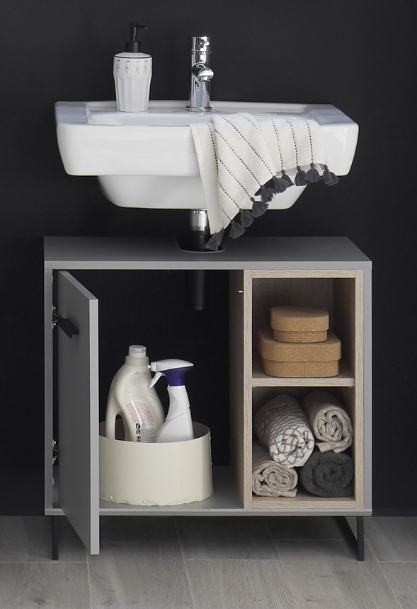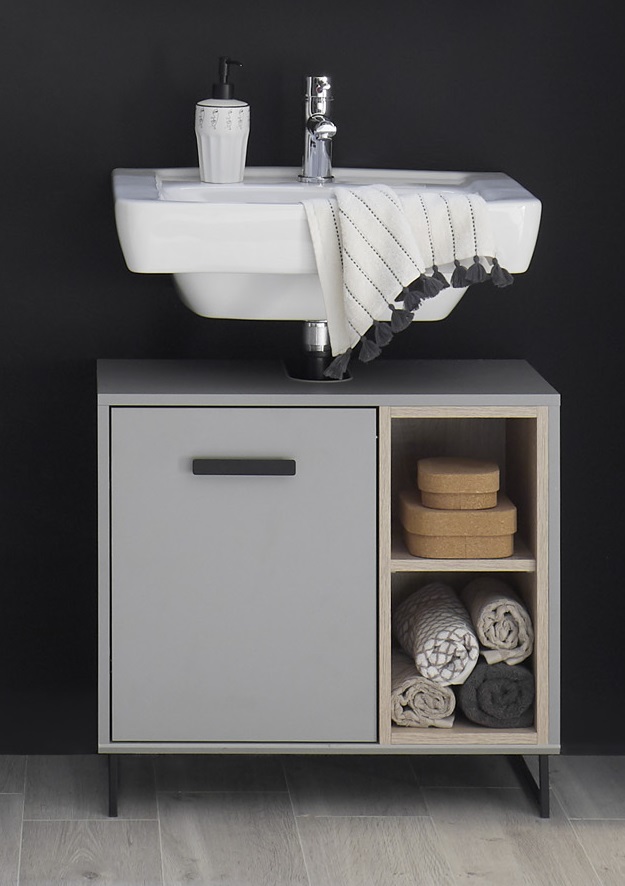 Waschbeckenunterschrank Tunis Grau Sonoma Schrank Badschrank Badmöbel Unterschrank