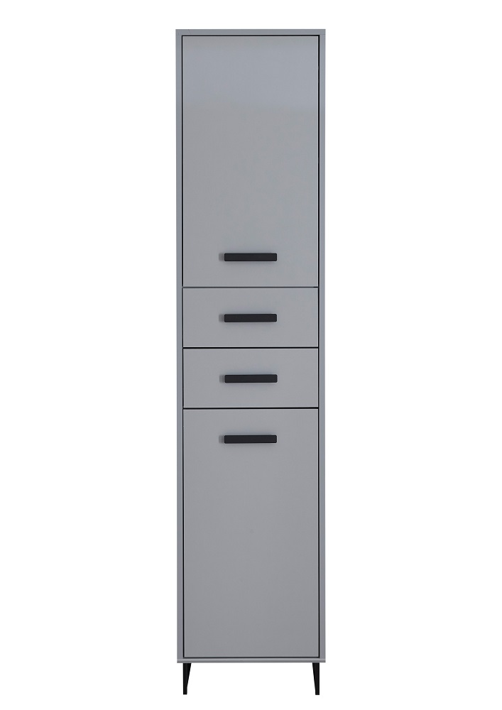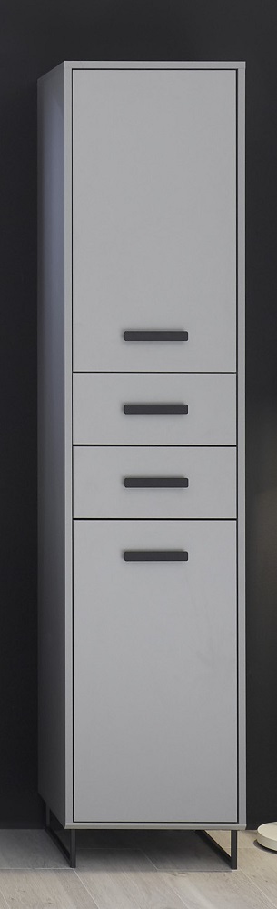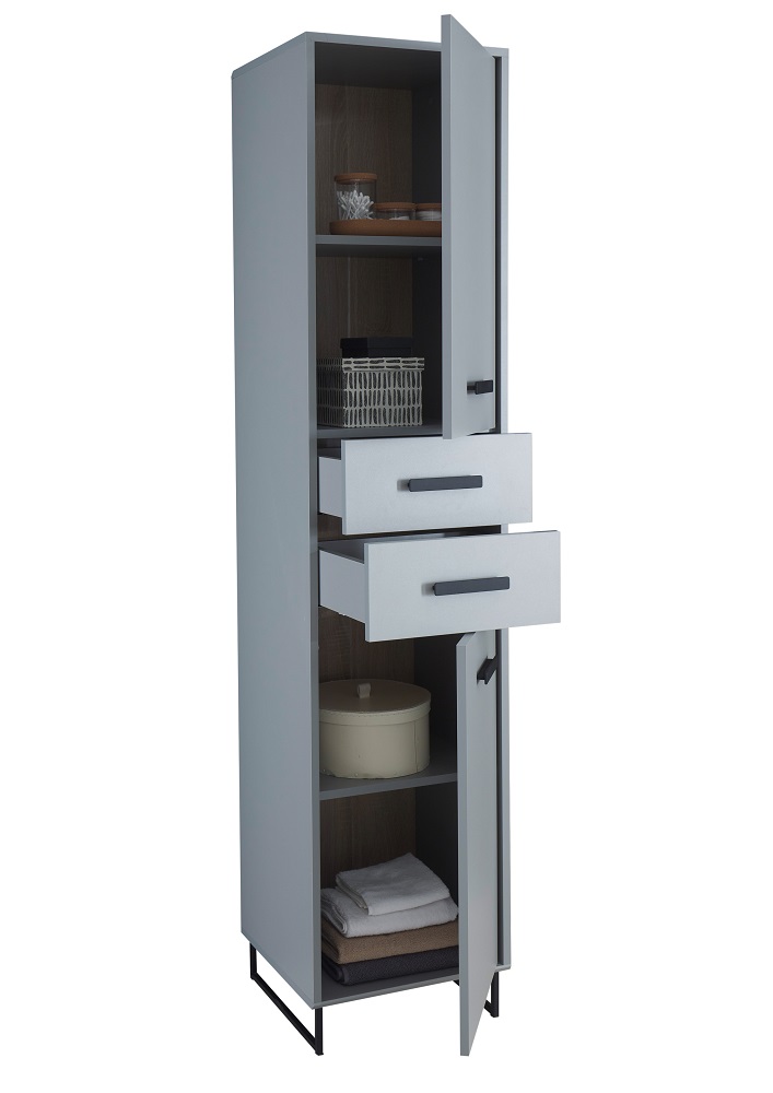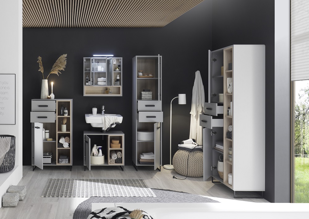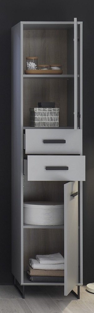 Hochschrank Tunis klein Grau und Sonoma Eiche Schrank Badezimmermöbel Schubschrank