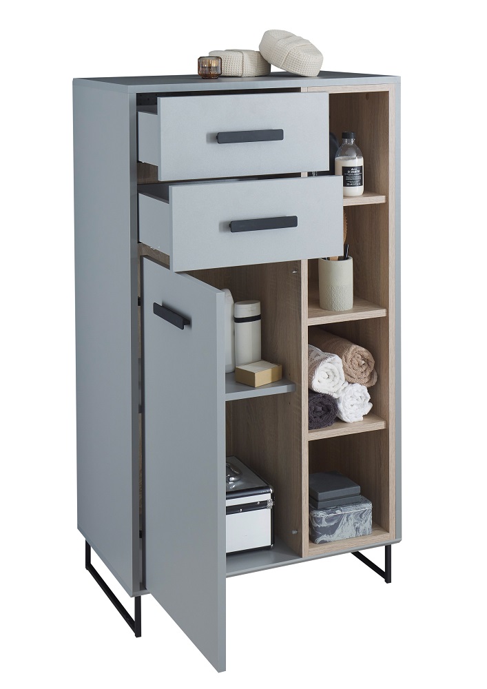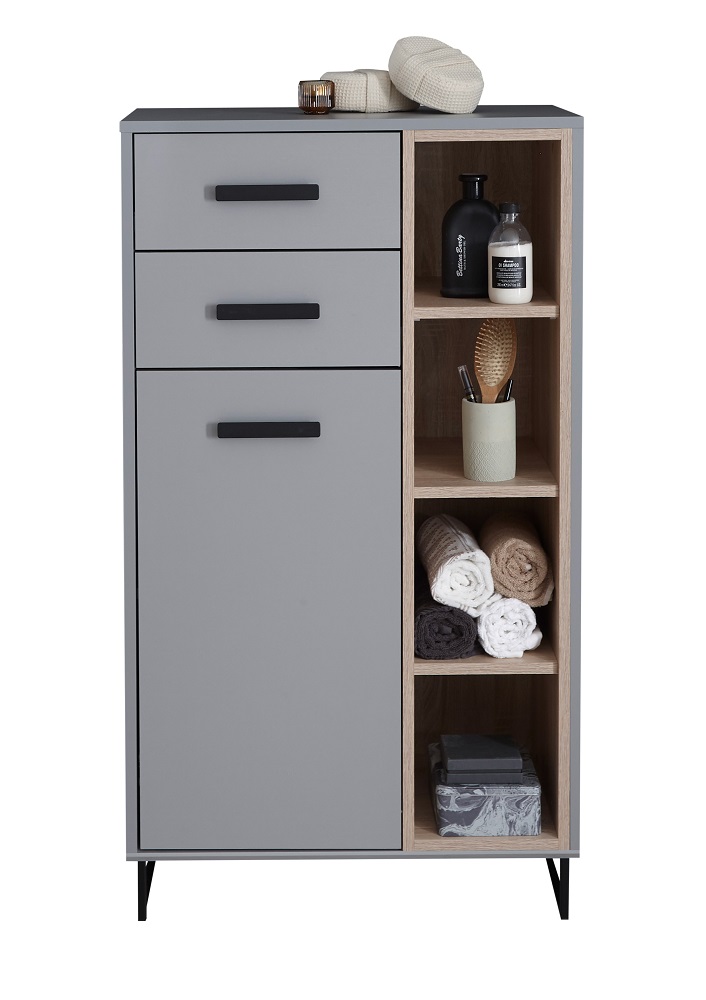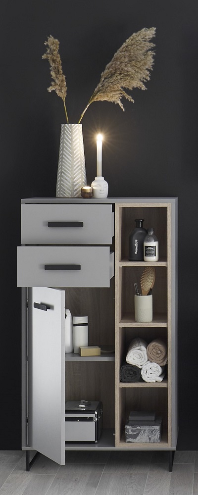 Highboard Tunis Grau und Eiche Kommode Schrank Badezimmer Badezimmerschrank
