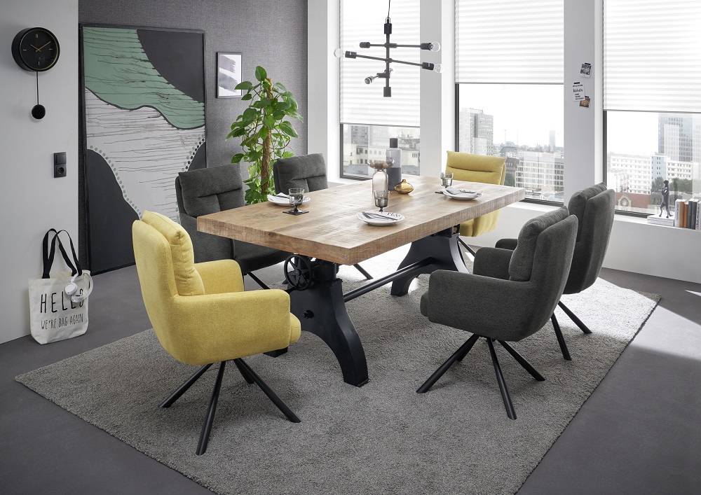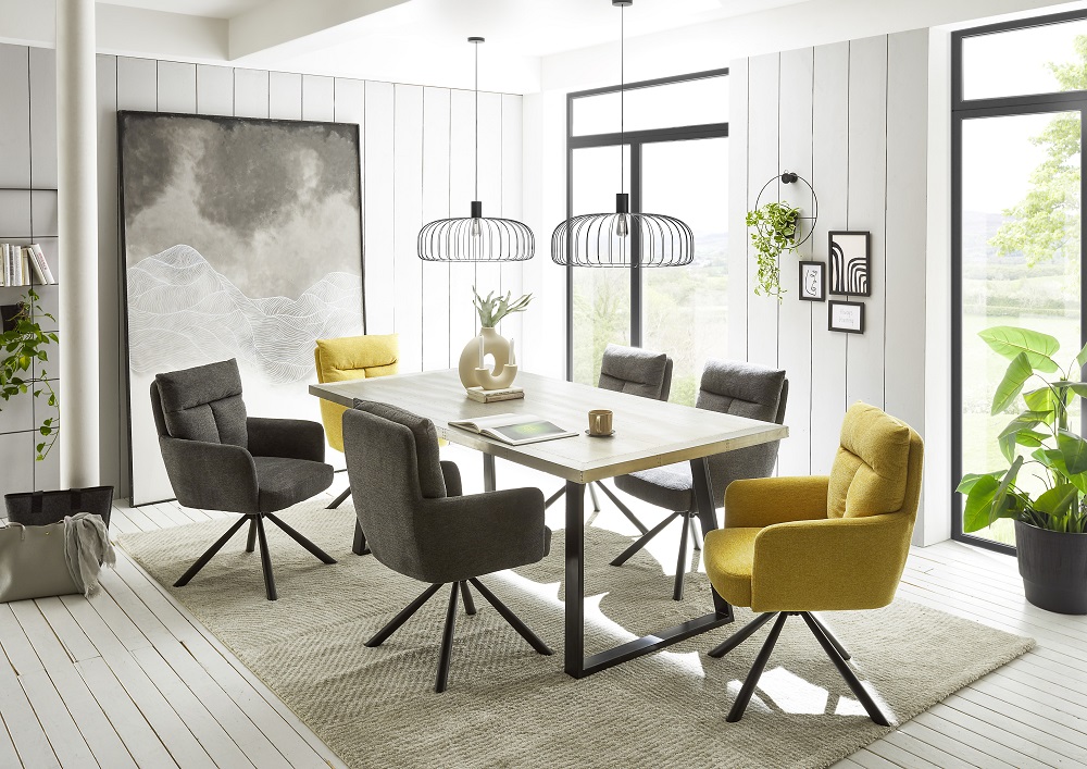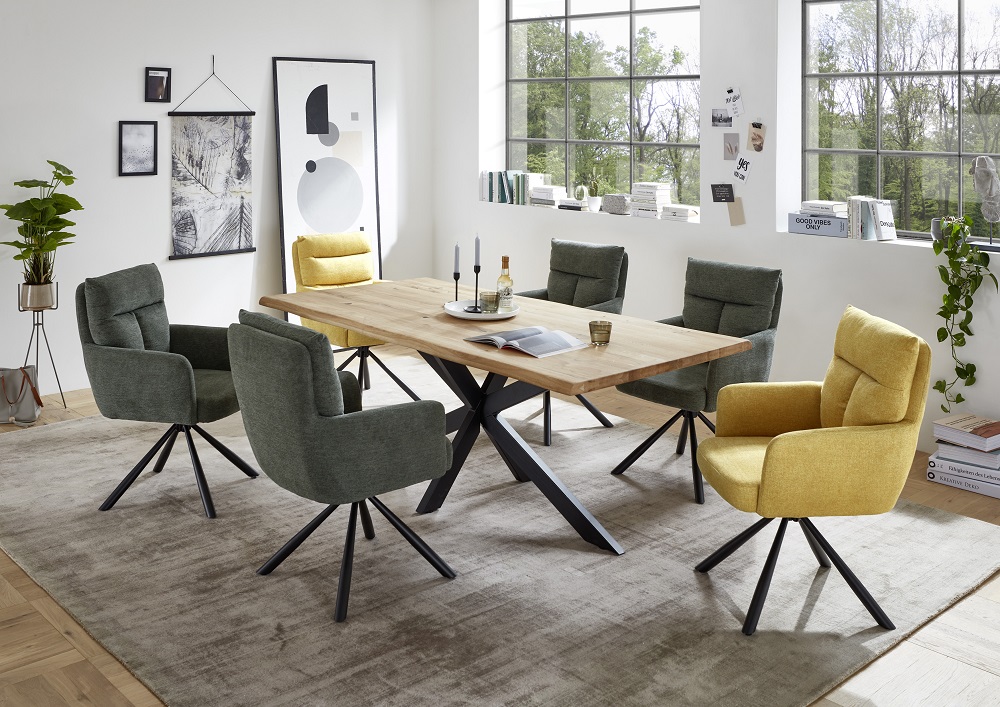 Armlehnenstuhl Sofia Gelb Stuhl Esszimmerstuhl Drehstuhl Sitzmöbel Polsterstuhl
