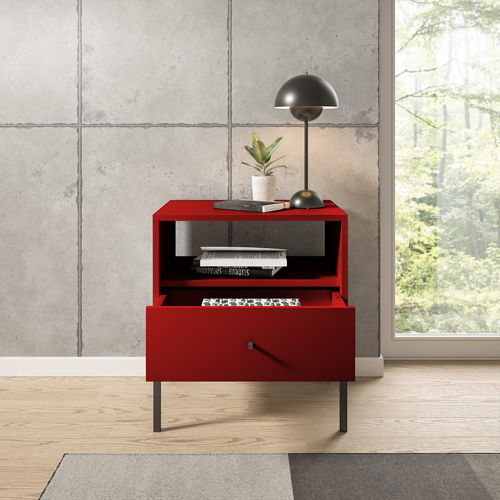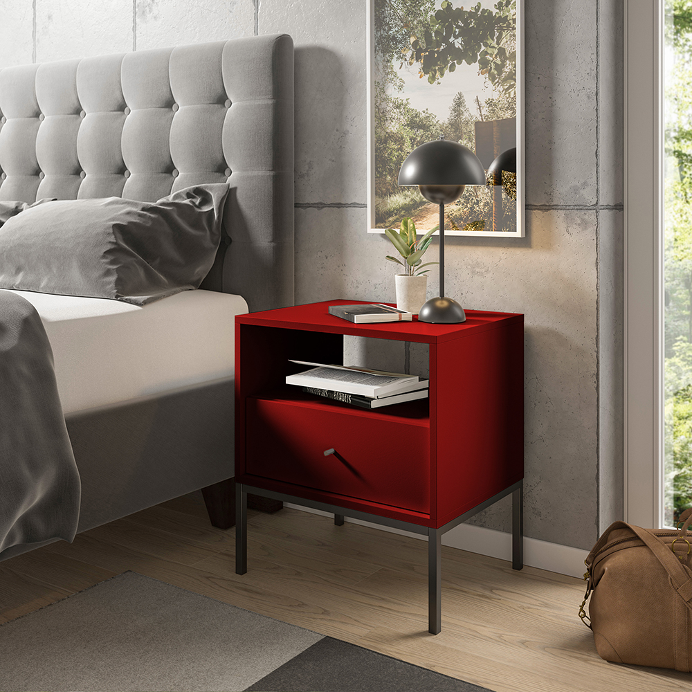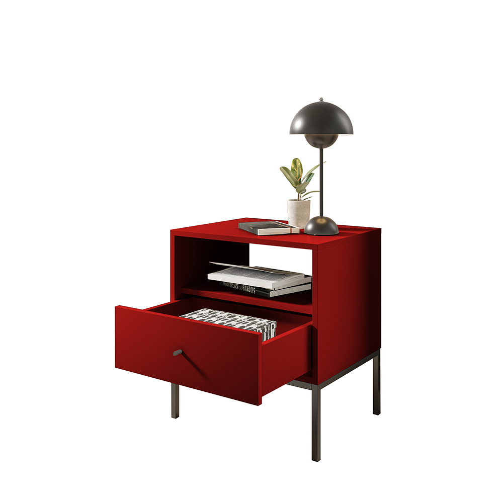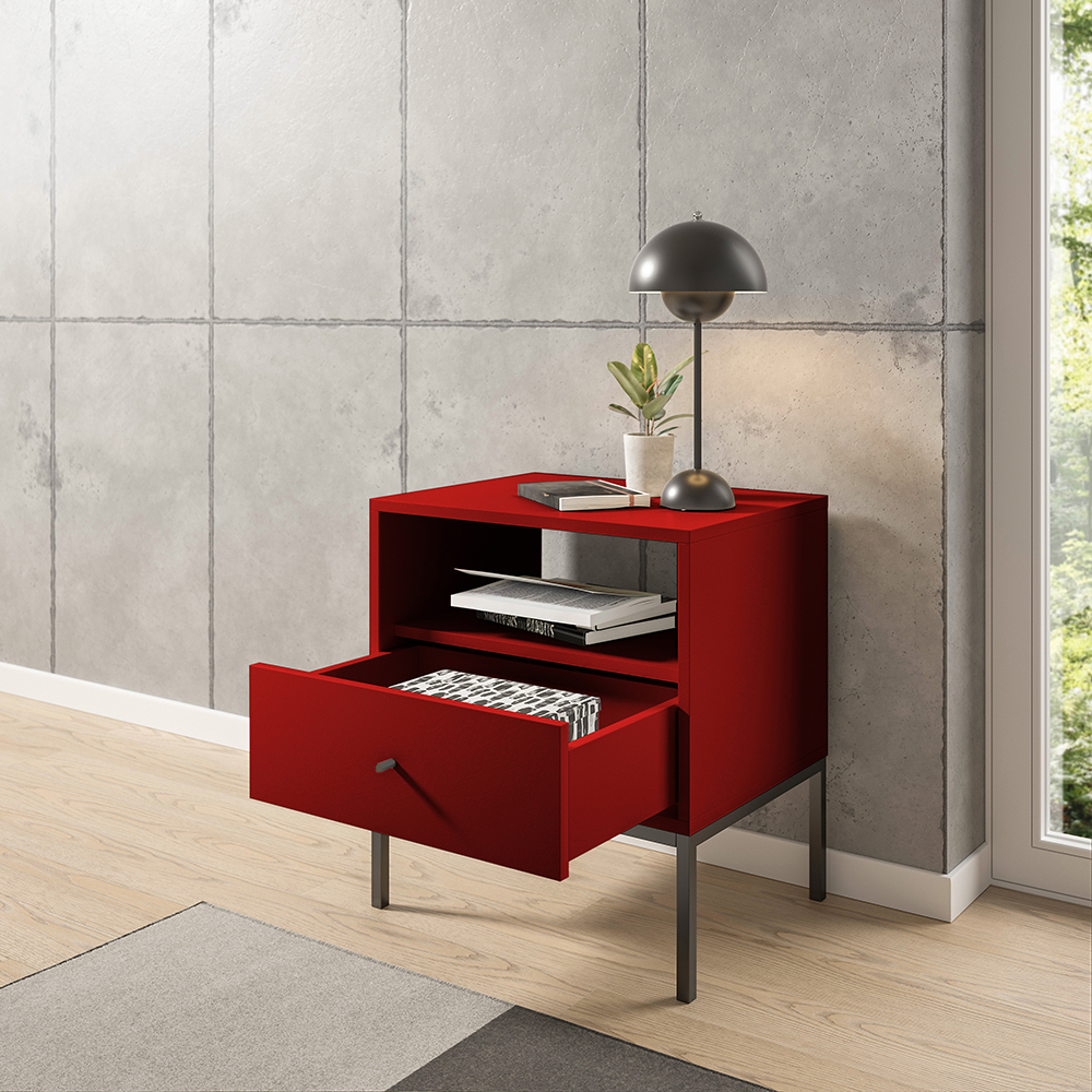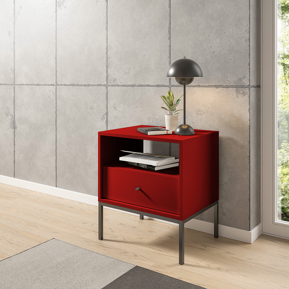Nachtkommode Ines Rot Metallgestell Nachttisch Nachtschrank Nako Kommode