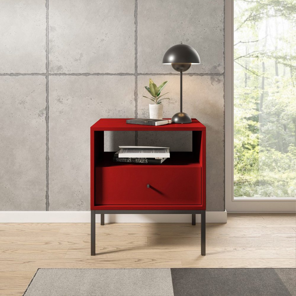 Produktinformationen "Nachtkommode Ines Rot Metallgestell Nachttisch Nachtschrank Nako Kommode"