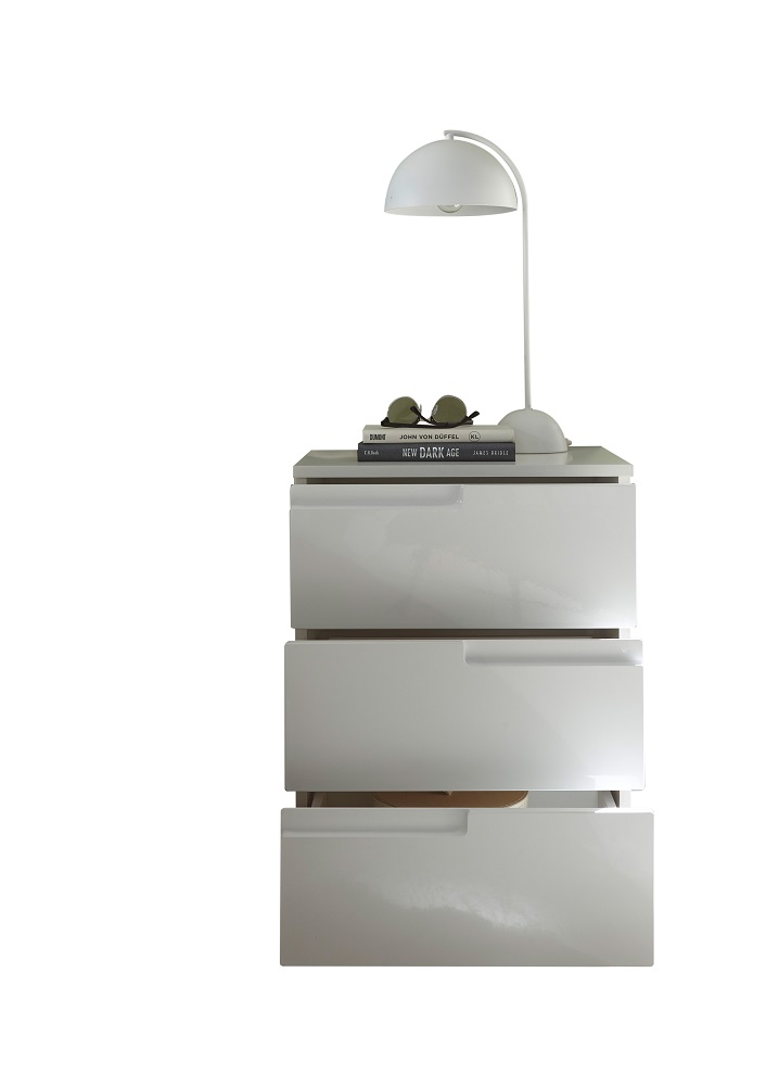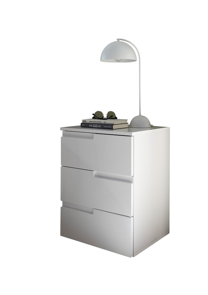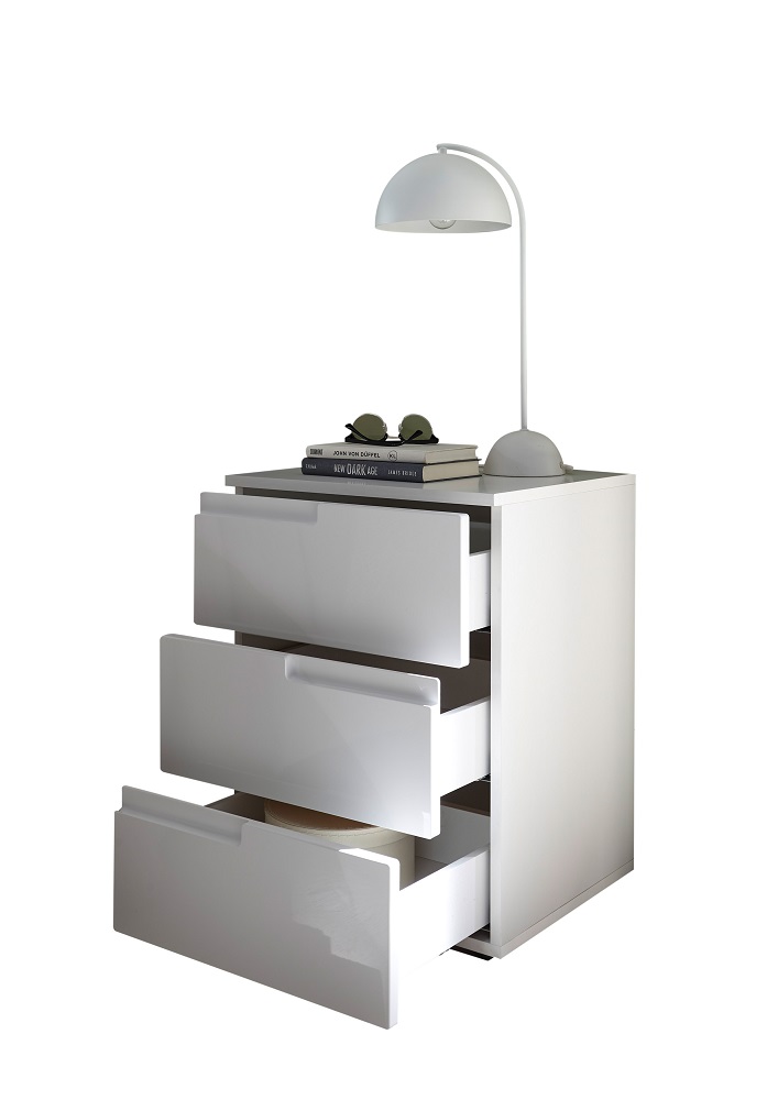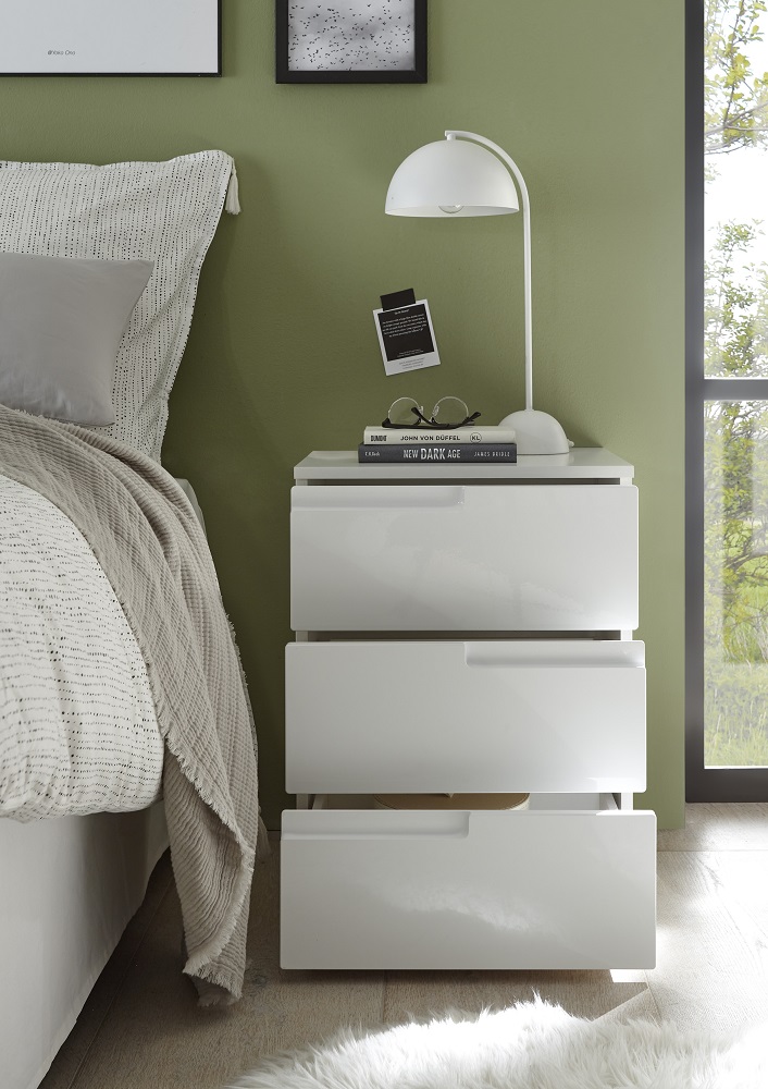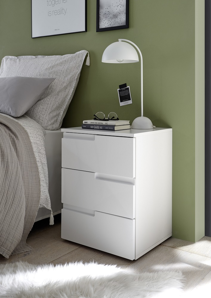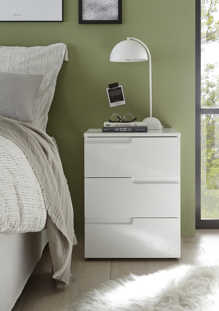 Entdecken Sie die elegante Nachtkommode Spice. Mit dem zeitlosen Design und der makellosen weißen Hochglanzoberfläche wird diese Nachtkommode zum Blickfang in Ihren Schlafraum.Mit insgesamt drei geräumigen Schubkästen bietet die Nachtkommode Spice ausreichend Platz, um Ihre persönlichen Gegenstände ordentlich verstauen zu können. Ob Bücher, Zeitschriften, Lesebrille oder andere Kleinigkeiten, alles findet seinen Platz in der kleinen praktischen Nachtkommode. Holen Sie sich jetzt Ihre neue Nachtkommode Spice und bereichern Sie Ihr Alltag!