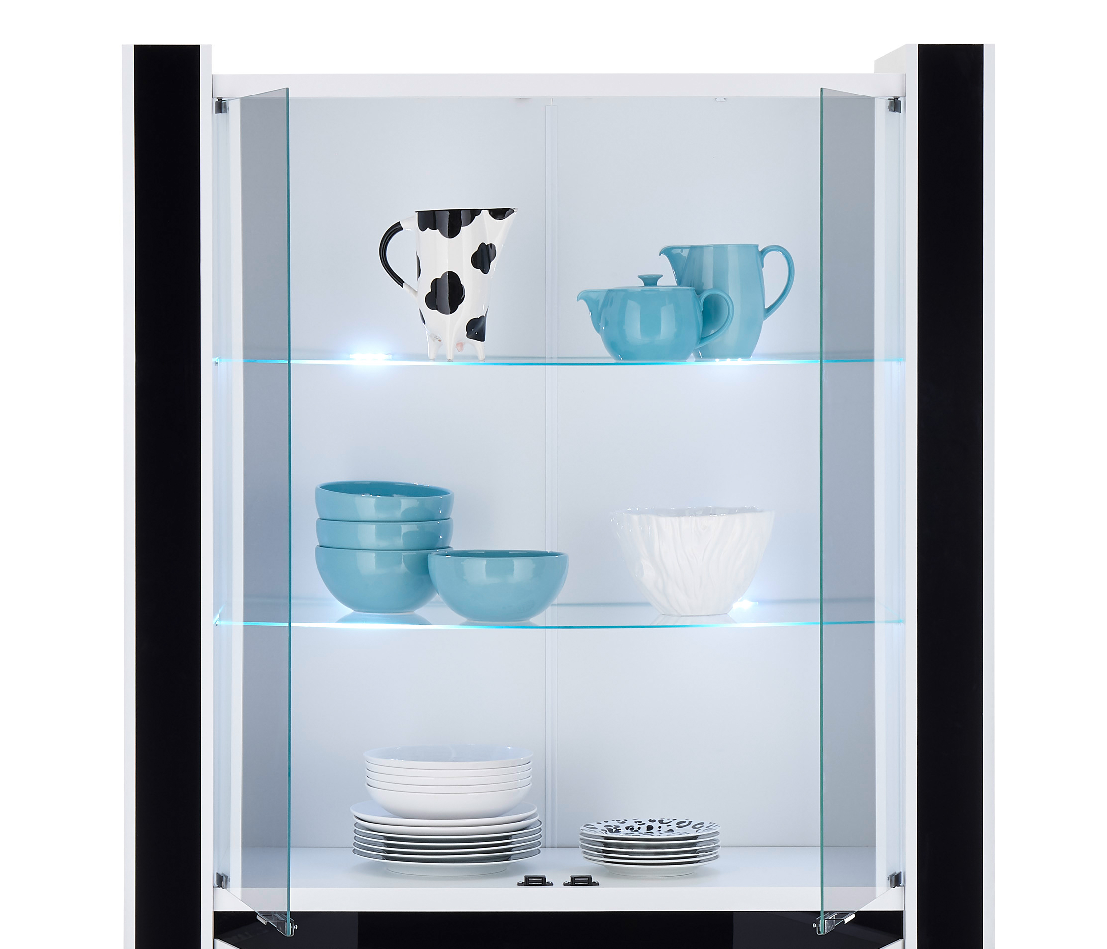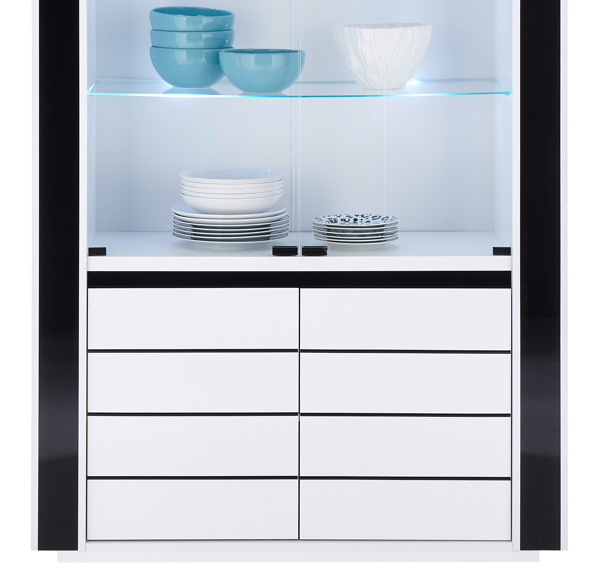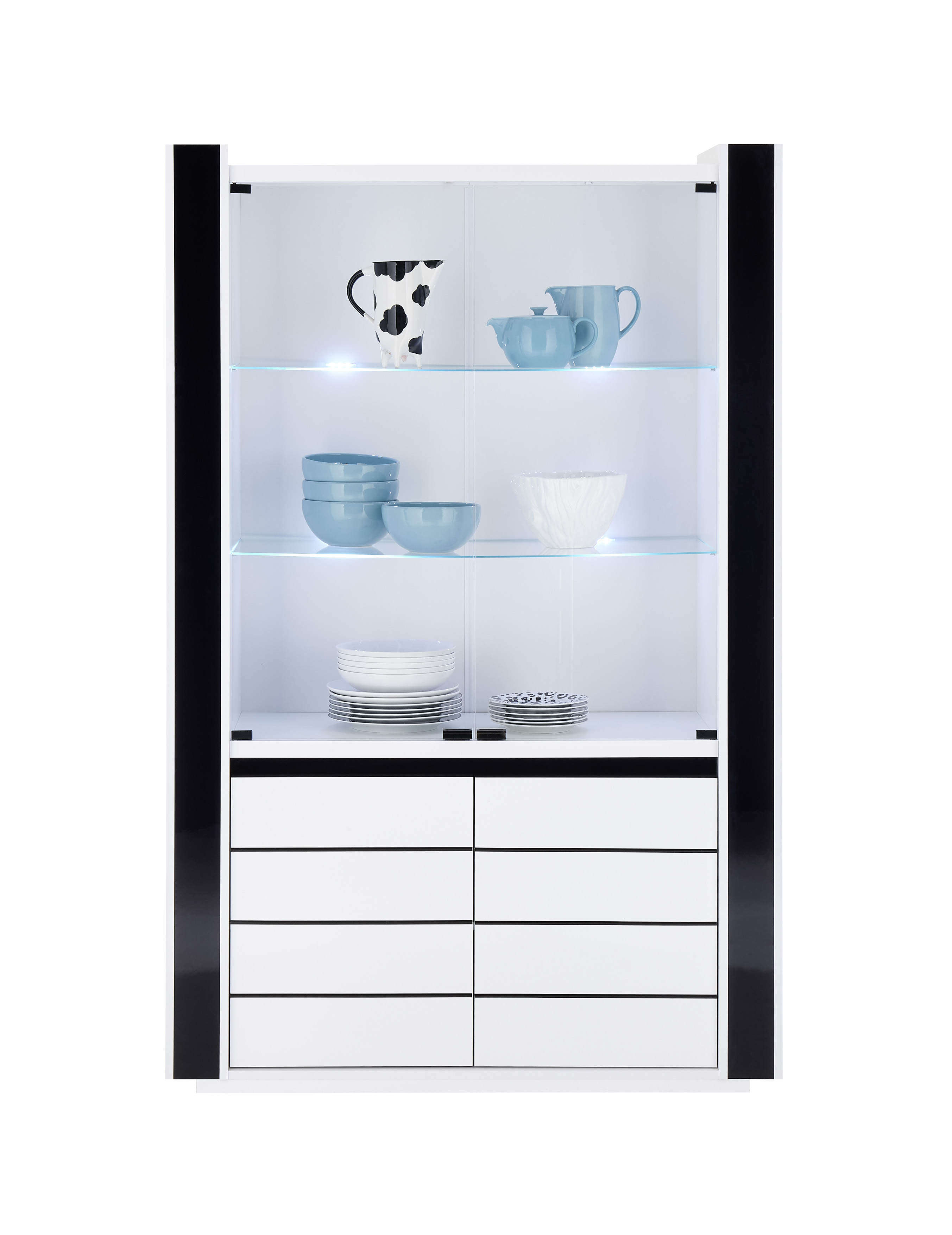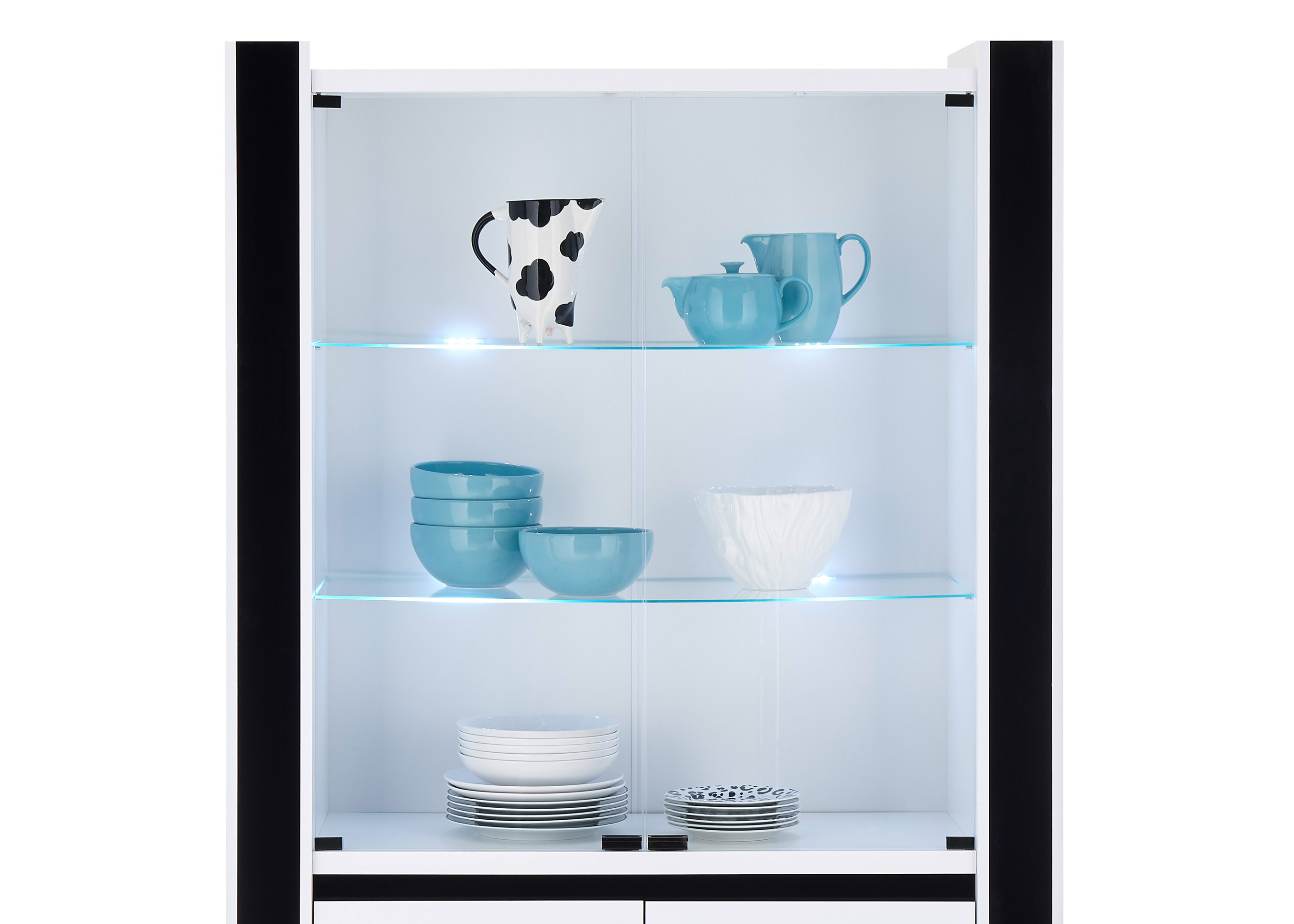 Entdecken Sie die zeitlose Eleganz und praktische Raffinesse unserer Vitrine Savona. Mit einem edlen Mix aus klassischem Weiß oder tiefem Schwarz, passt sie die Vitrine Savona perfekt in ihren modernen Wohnraum. Die großzügigen Maße von ca. 73 cm Breite, 185 cm Höhe und 45 cm Tiefe bieten ausreichend Platz für Ihre Bilder oder Accessoirs Ihrer Liebsten. Dank der 2 Türen und 4 Einlegeböden haben Sie eine vielfältige Möglichkeit zur Präsentation. Und mit der integrierten Beleuchtung setzen Sie Ihre Sammlung gekonnt in Szene. Gönnen Sie sich den Luxus von der Vitrine Savona!
