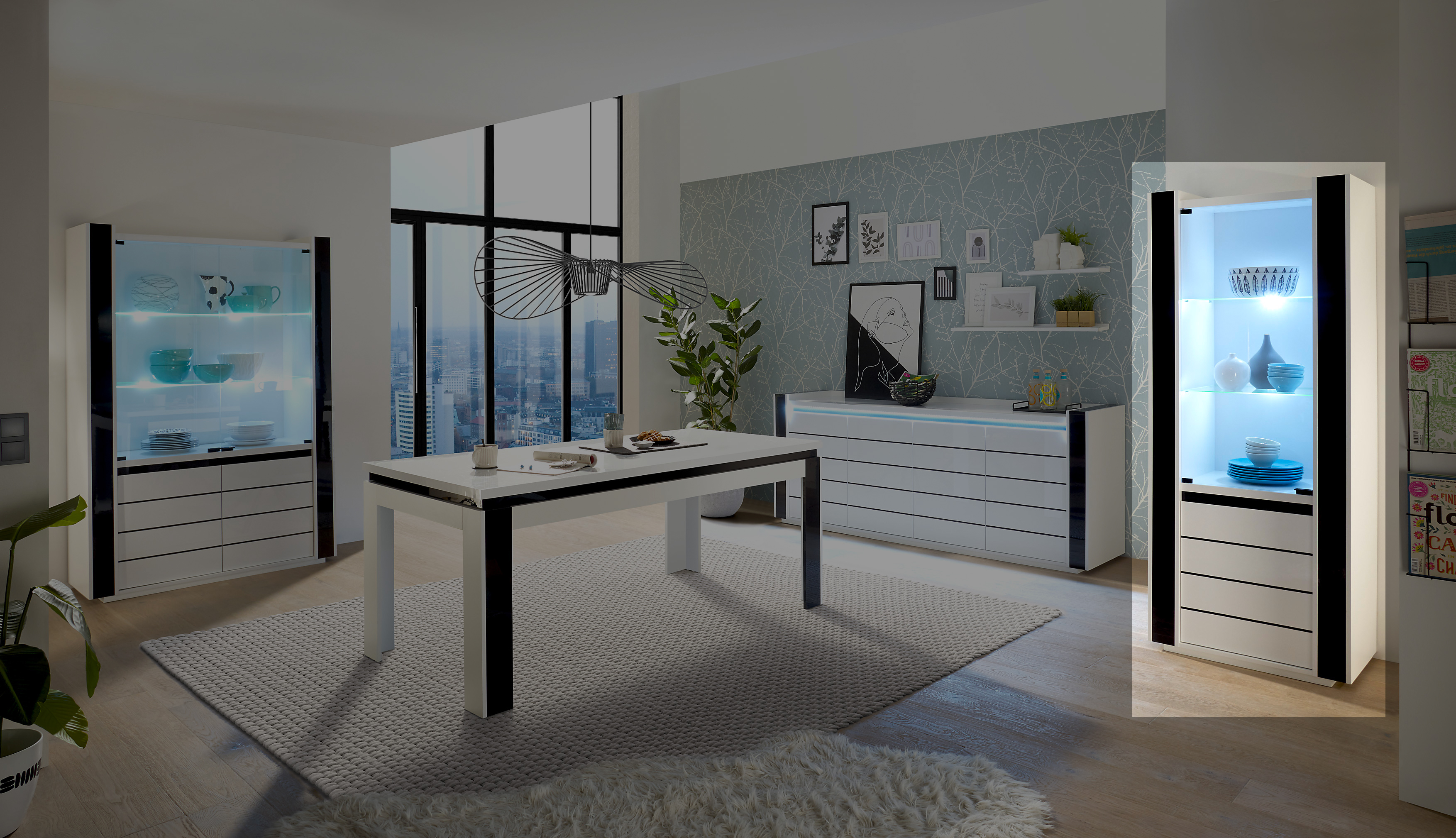 Erleben Sie die zeitlose Eleganz mit unserem modernen Sideboard Savona! In den edlen Farben Weiß und Schwarz erhältlich, fügt sich das Sideboard Savona nahtlos in Ihr Interieur ein. Das Sideboard bietet Ihnen großzügigen Stauraum für Ihre Dekorationsartikel. Dank der integrierten Beleuchtung strahlt Ihr Raum in einem neuen Glanz. Dank des großzügigen Stauraumes des Sideboards Savona ist es Ihnen mit Leichtigkeit möglich Ihre Dekorationen usw. organisiert aufzubewahren. Bestellen Sie jetzt Ihr neues Sideboard Savona, und verleihen Sie Ihrem Zuhause einen modernen und eleganten Touch!