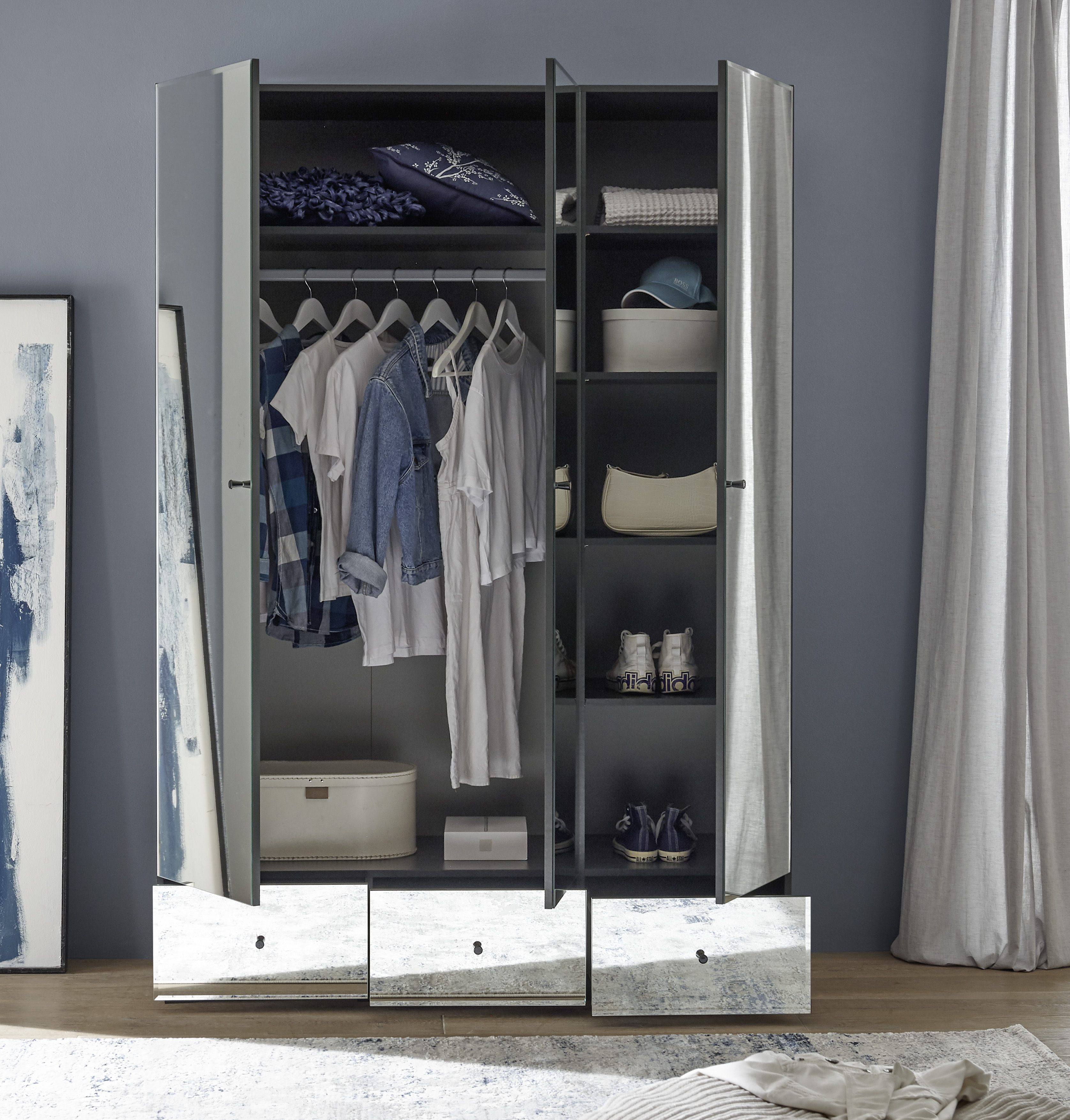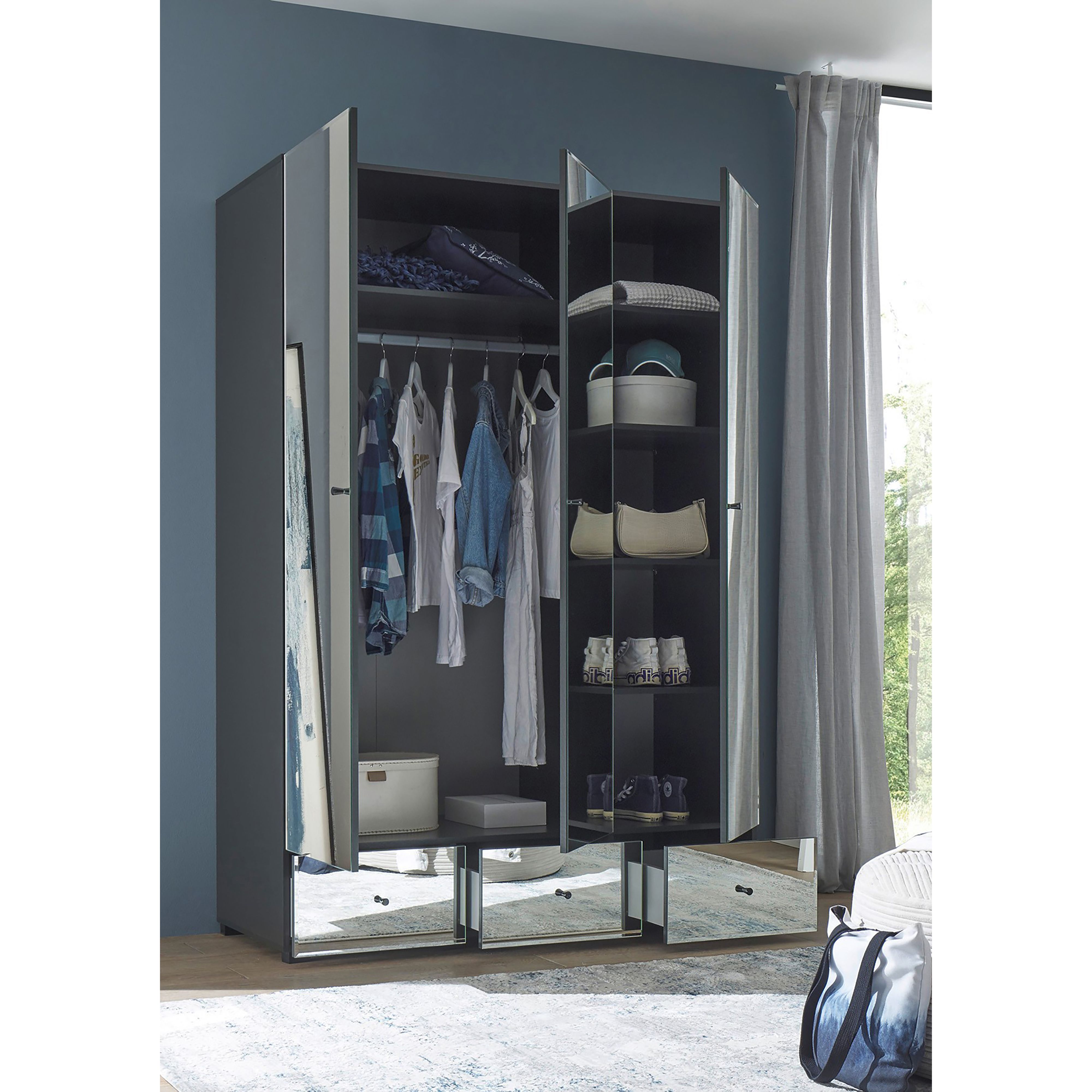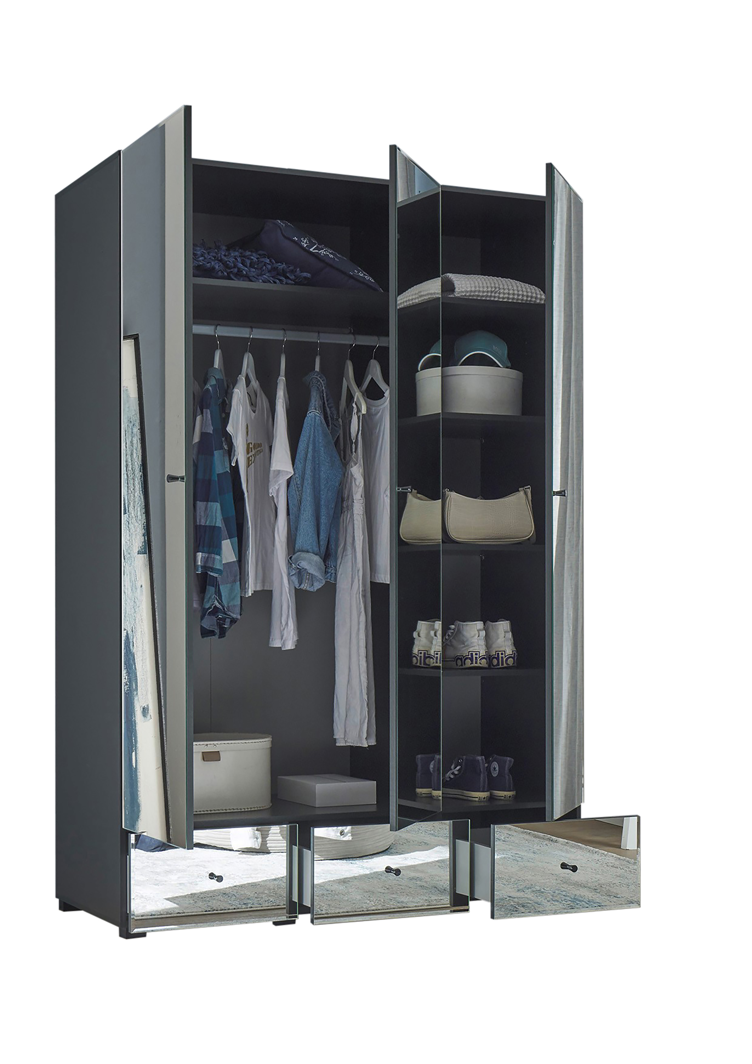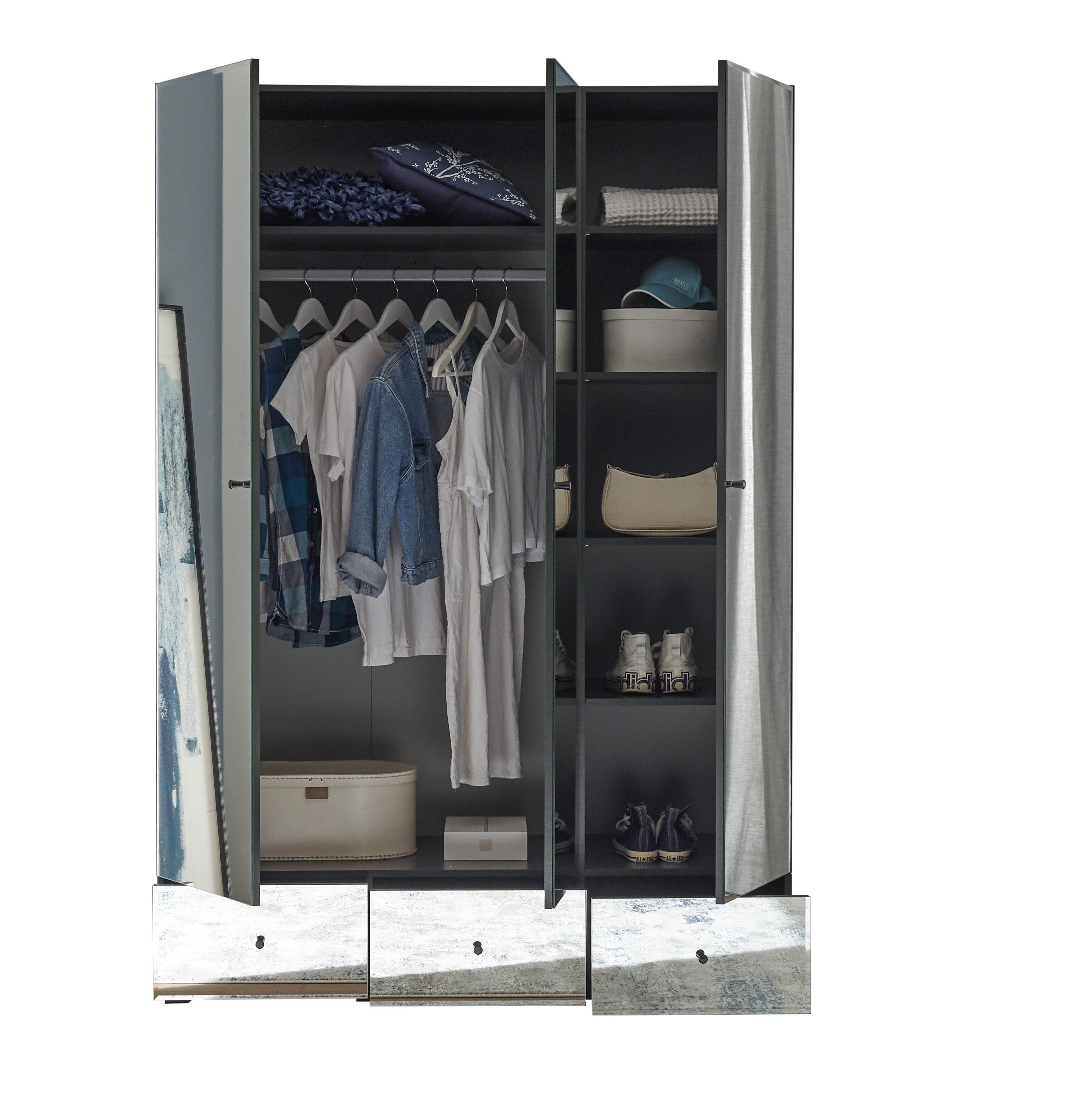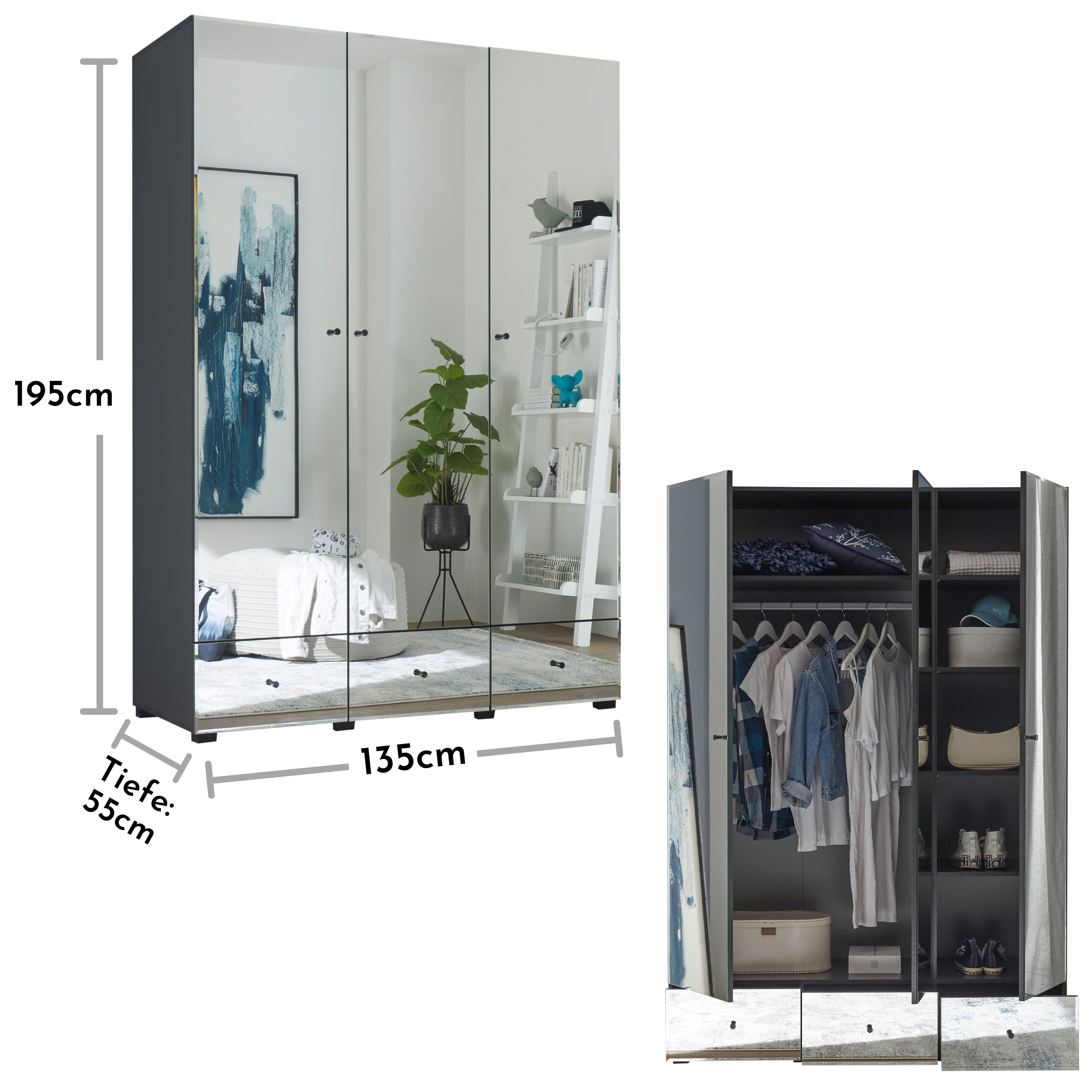 Produktinformationen "Kleiderschrank Alvito Schrank Schlafzimmerschrank Spiegelschrank Schlafzimmer Graphit"