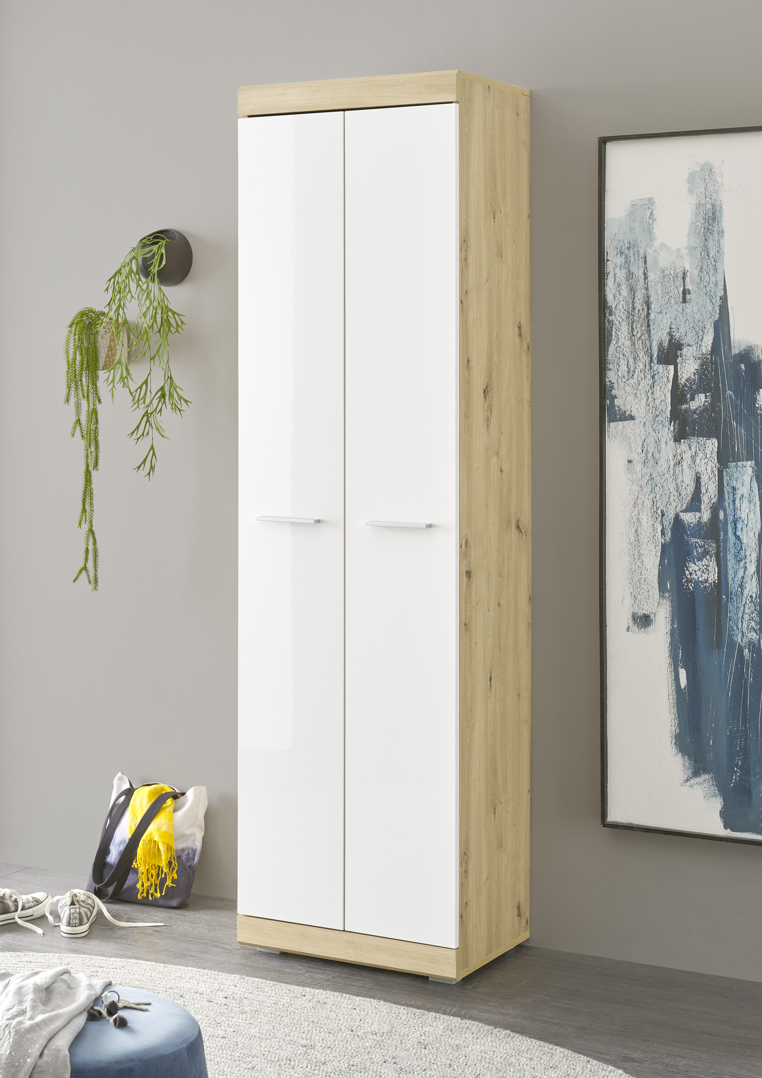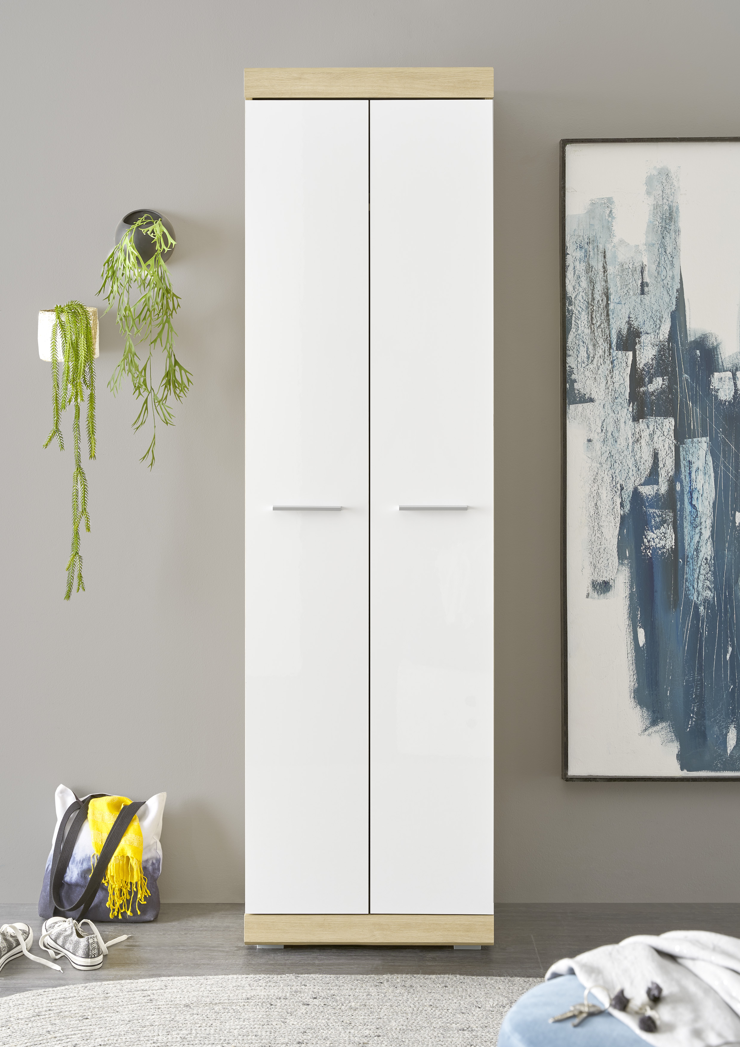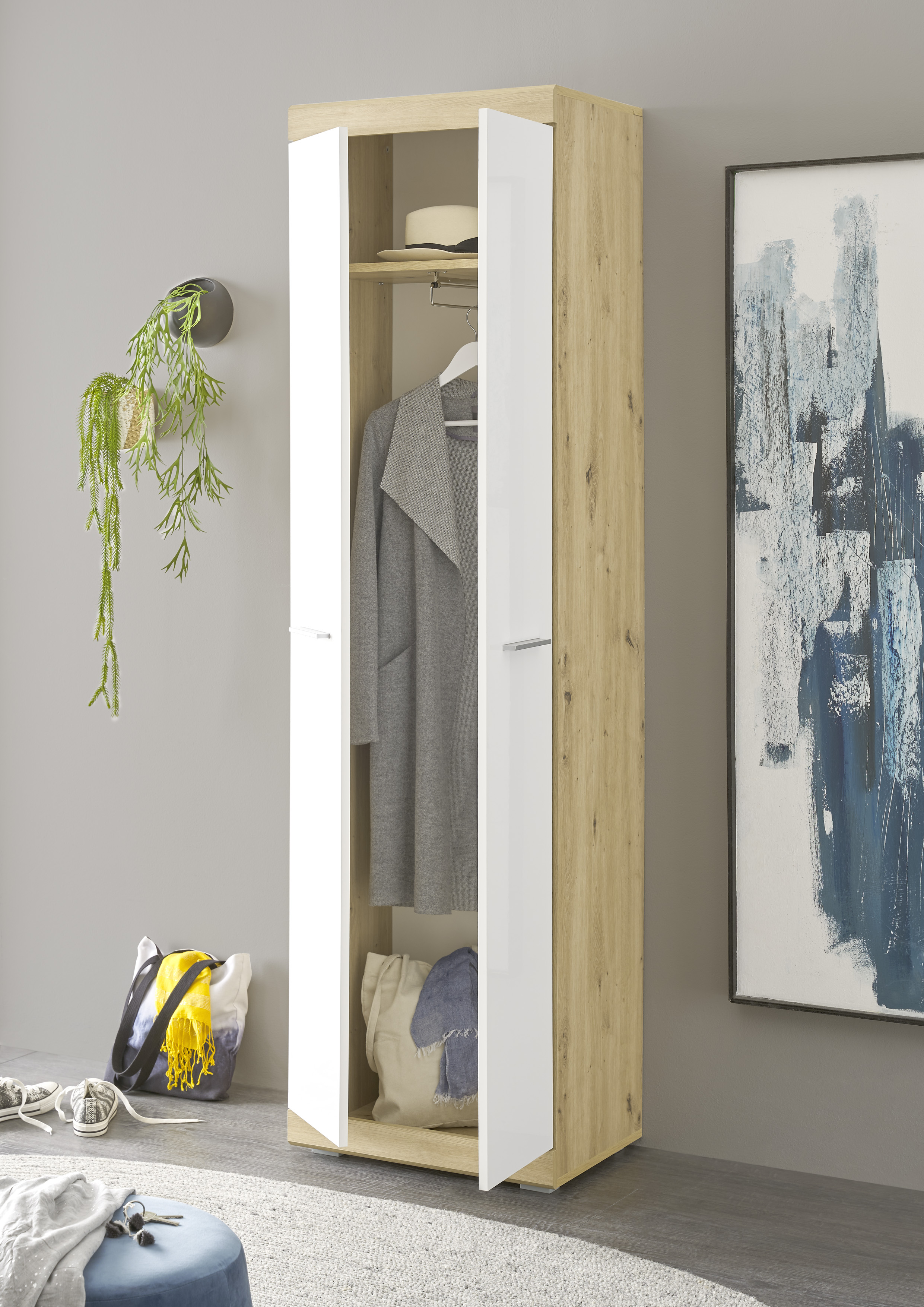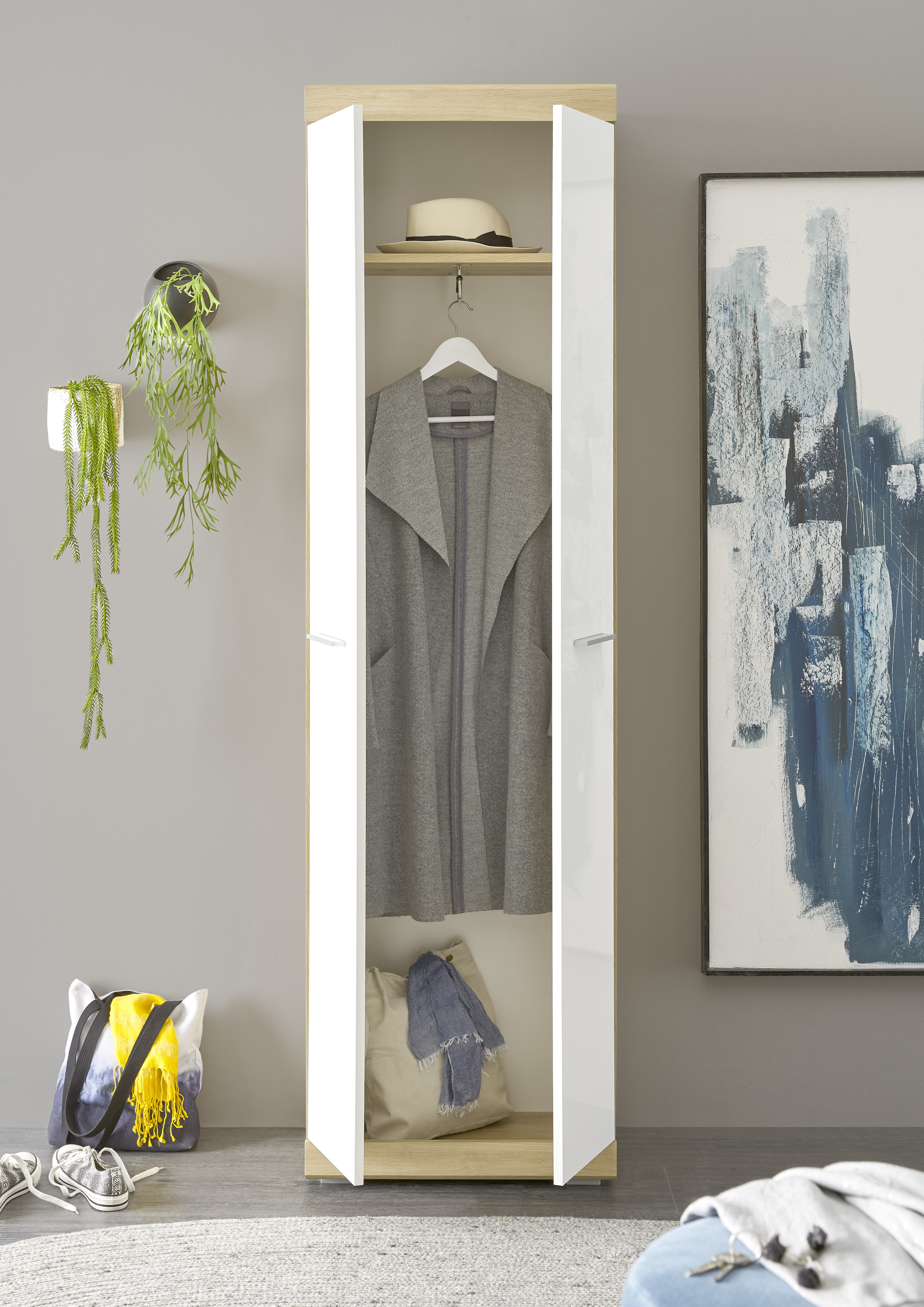 Produktinformationen "Garderobenschrank Nola Schrank Garderobe Flurgarderobe Flur Eiche/Weiß"
