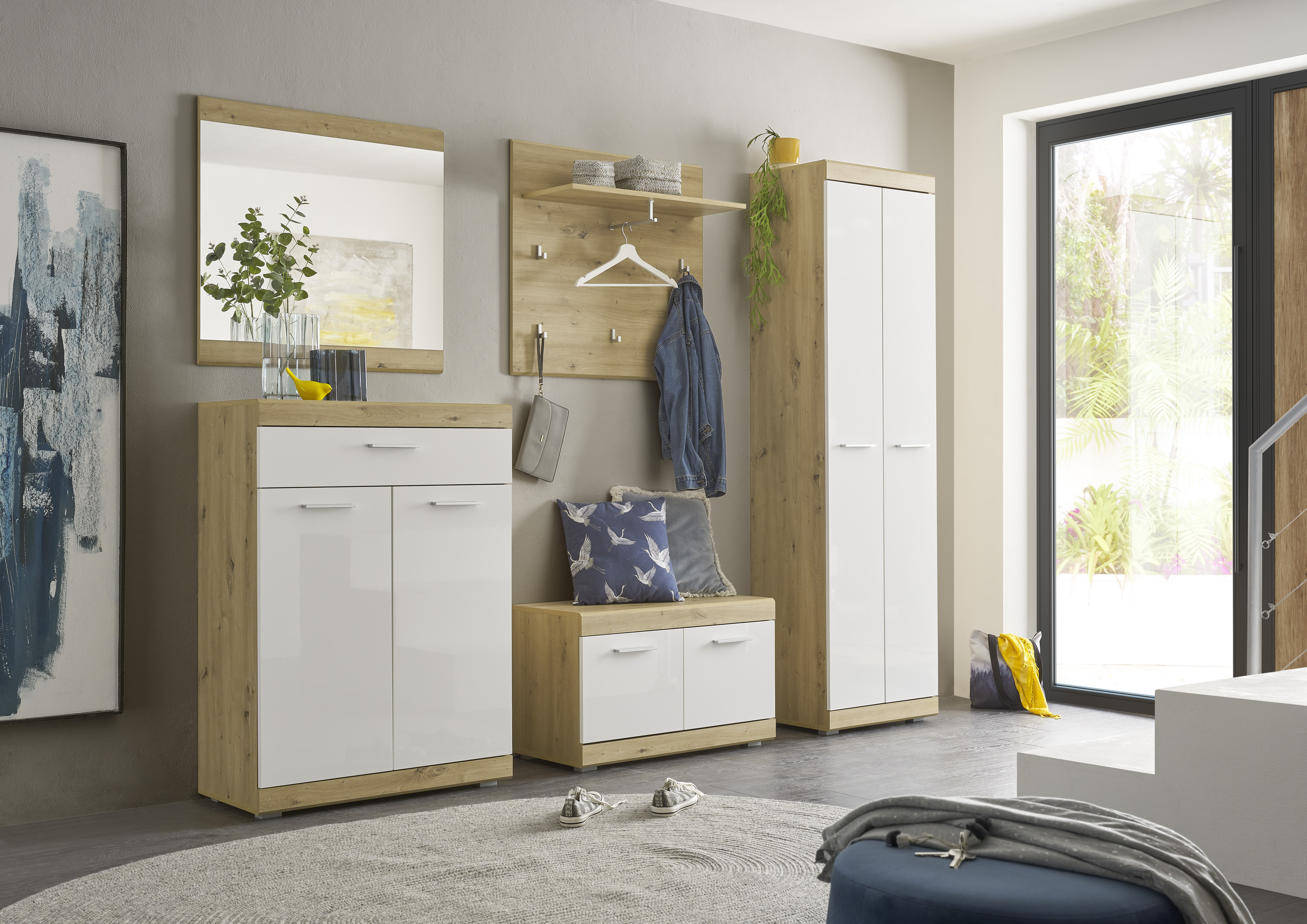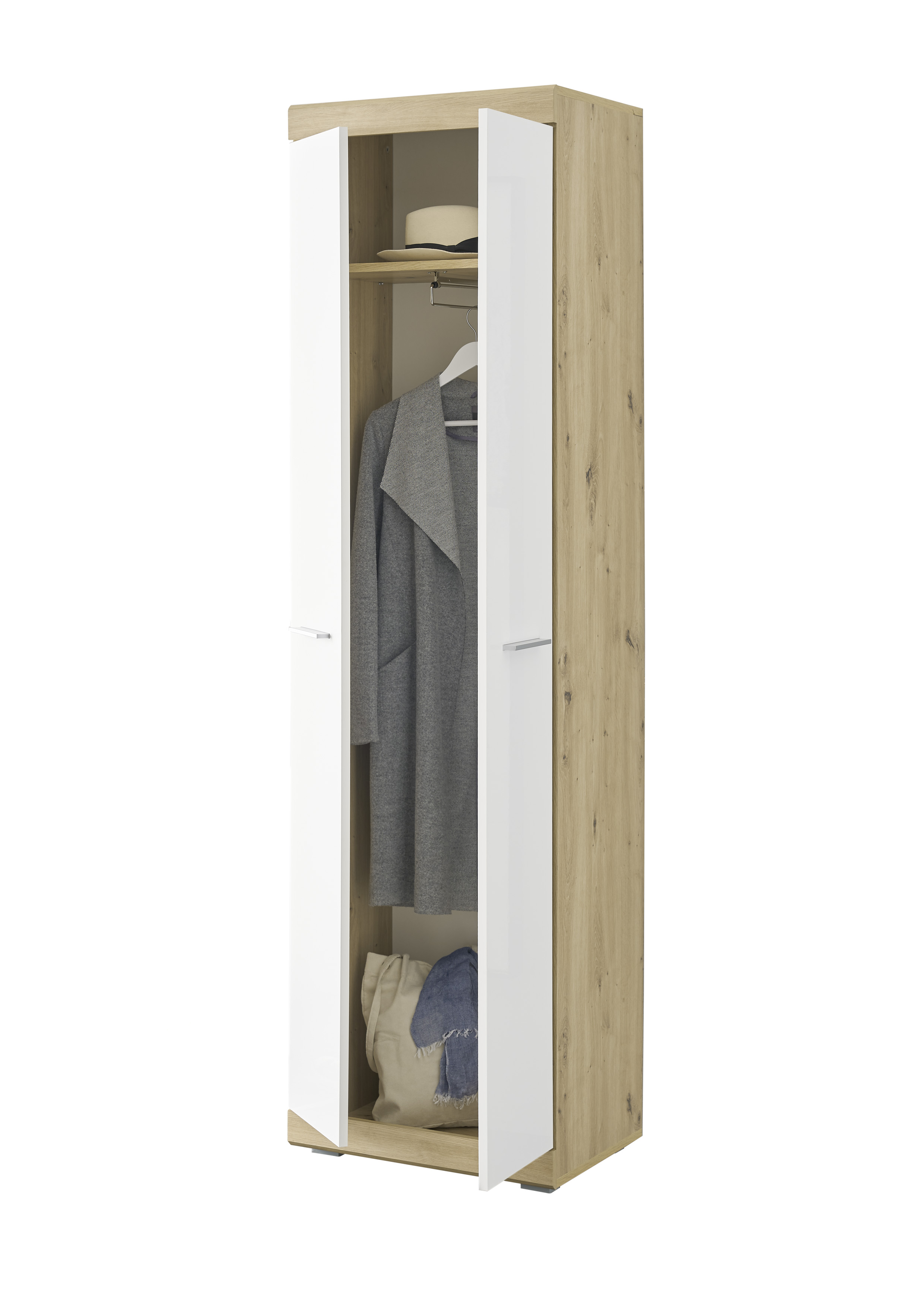 Garderobenschrank Nola Schrank Garderobe Flurgarderobe Flur Eiche/Weiß