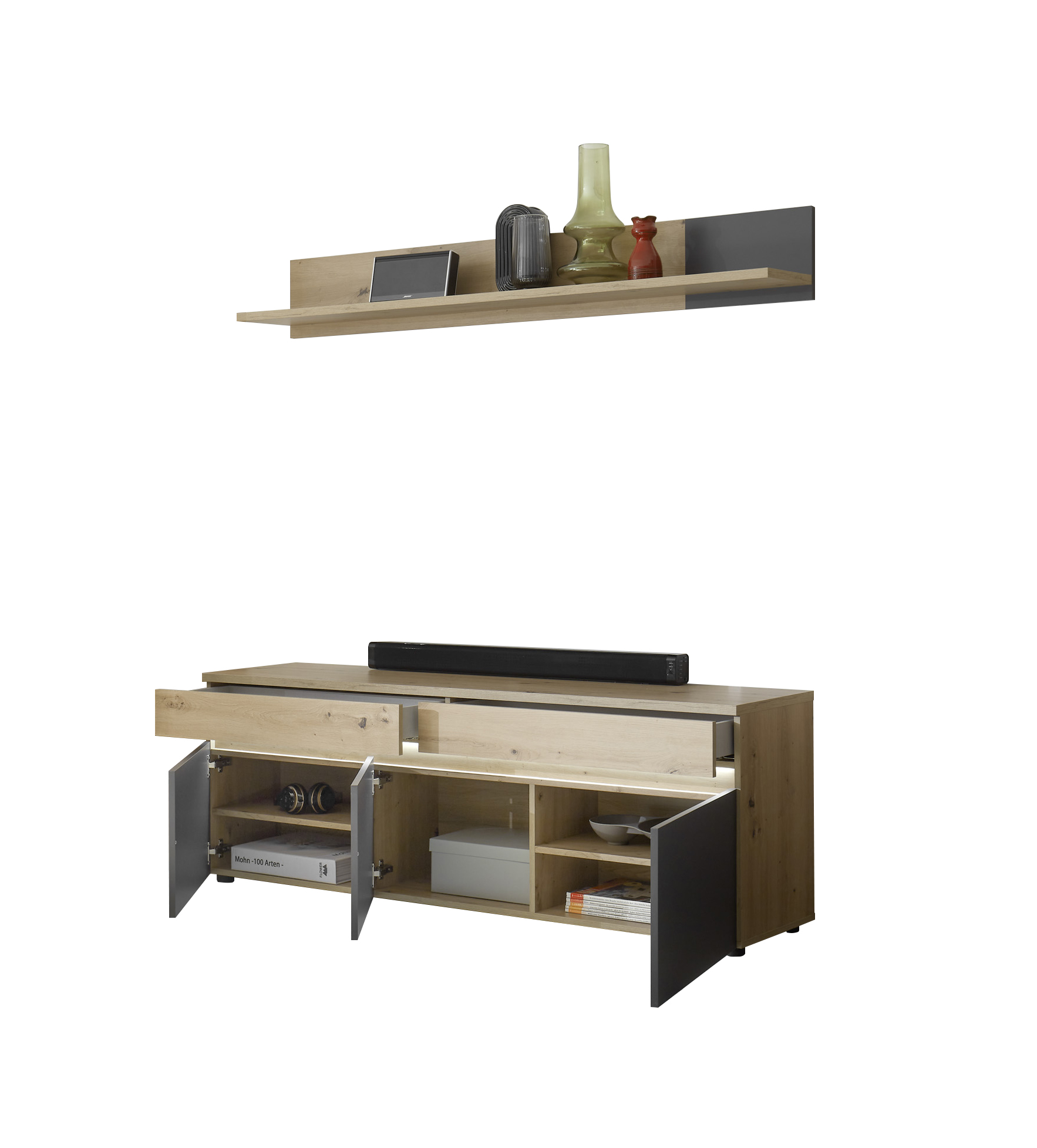 Lowboard und Wandboard Lille TV-Board Schrank Wandregal Regal Wohnzimmer