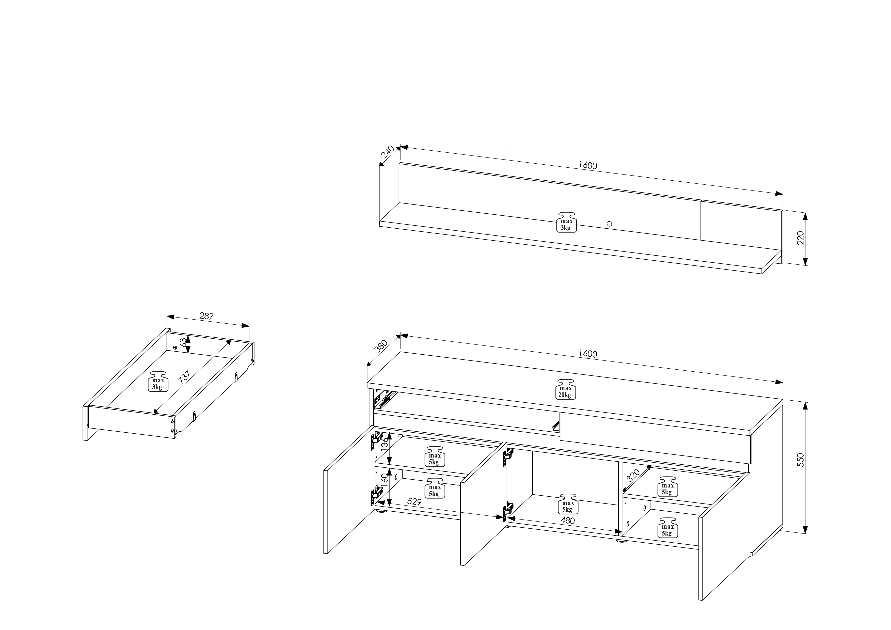 | Wandboard (B/H/T) ca.: | 160 x 22 x 24 cm |