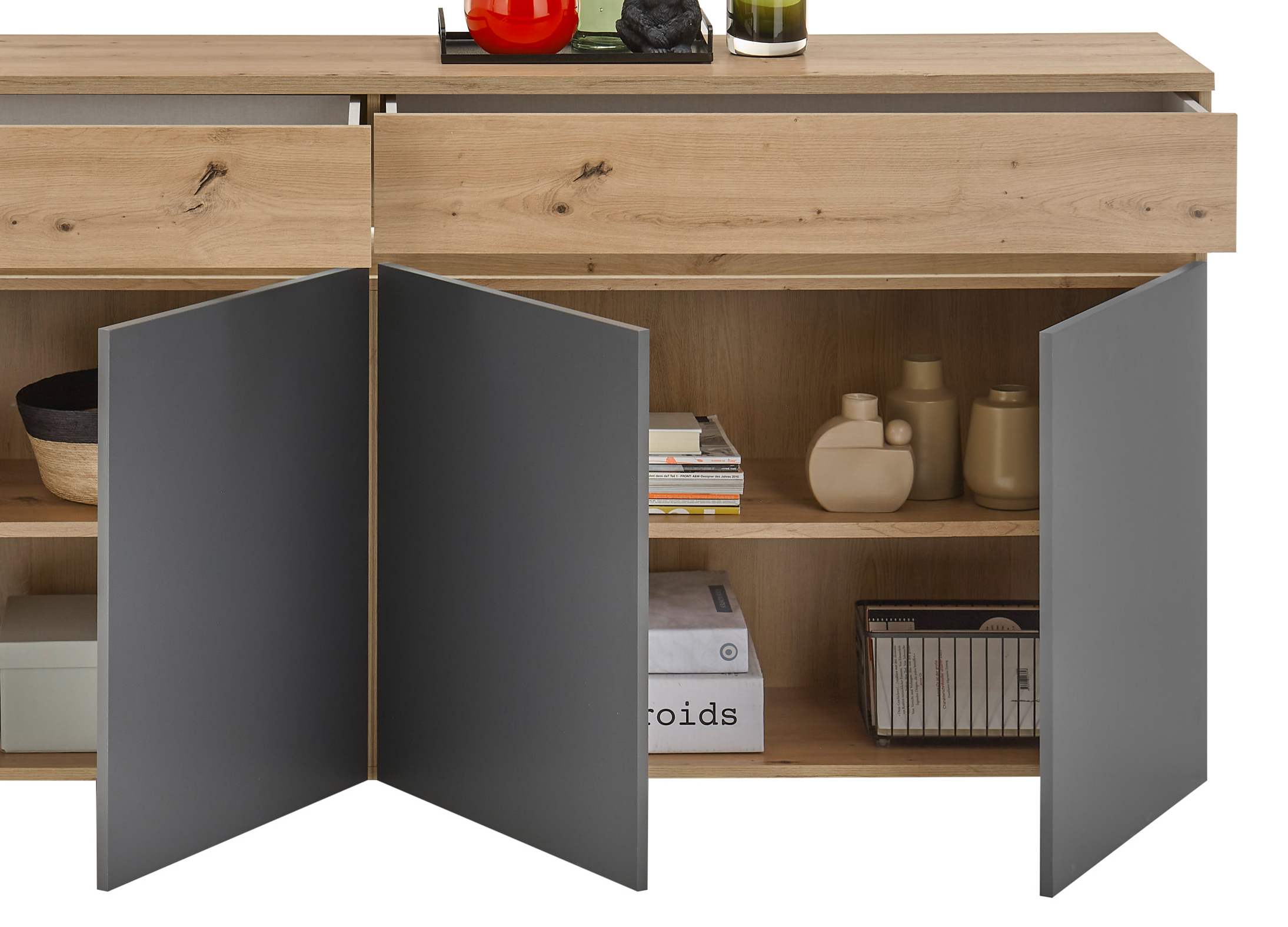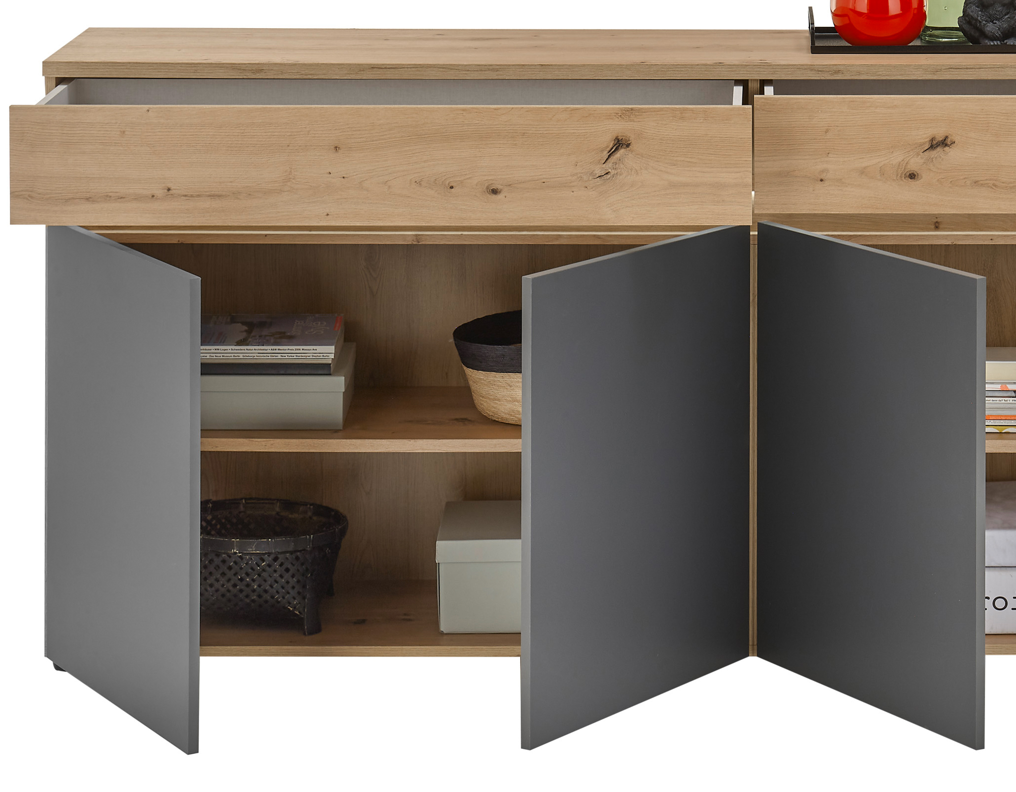 Entdecken Sie das praktische und stilvolle Lowboard und Wandboard der Möbelserie Lille. Mit dem modernen Design und der wundervollen Farbkombination aus Artisan Eiche und Anthrazit passen sich das Lowboard und das Wandboard Lille perfekt Ihren Wohnbereich an, und wertet diesen mit dem Design beider Möbelelemente auf. Dank der vielen Ablagemöglichkeiten des Sideboards, können Sie ganz angenehm Ihre Dekorationen oder Accessoires unterbringen, ohne dass diese die Optik Ihres Wohnbereiches einschränken oder beeinträchtigen. Ihre besonderen Accessoires Ihrer Liebsten können Sie ganz angenehm auf das Wandboard der Möbelserie Lille stellen, sodass Sie diese jederzeit in Ihrem Wohnbereich im Blick haben. Holen Sie sich jetzt das Wandboard und das Sideboard der Möbelserie Lille, und bereichern Sie Ihren Wohnbereich!