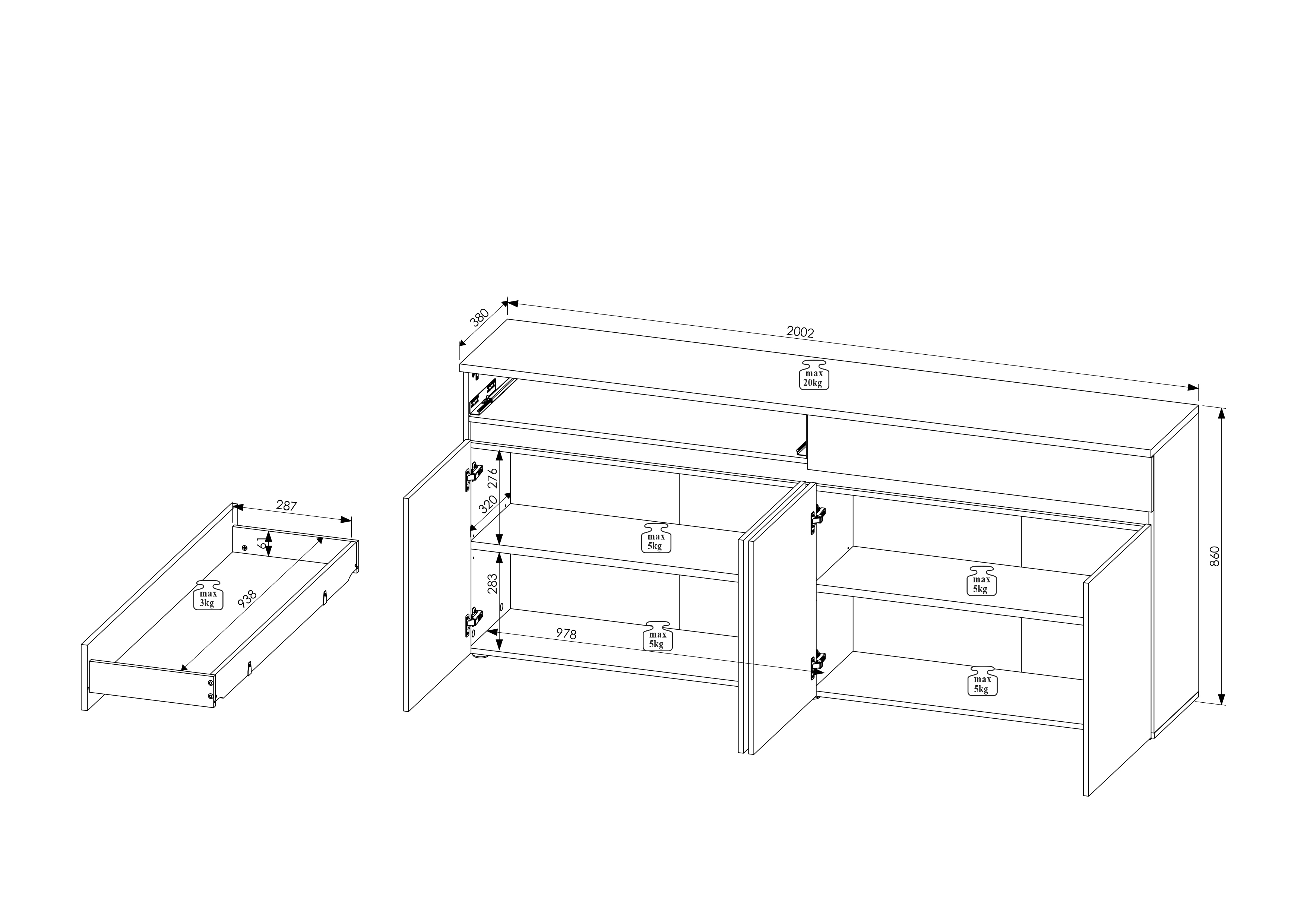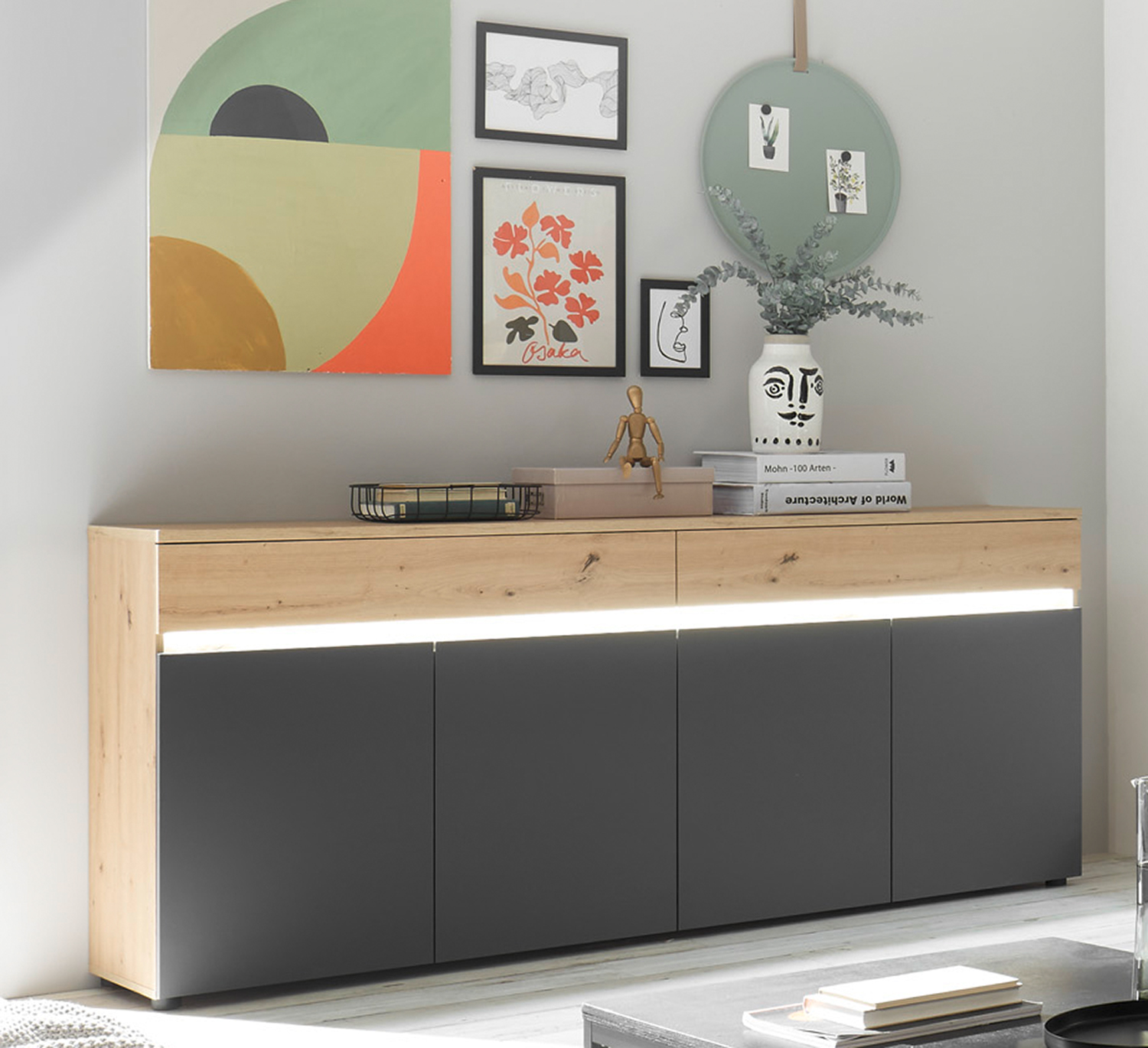 Sideboard Lille Kommode Schrank Wohnzimmerschrank Anrichte Flurkommode Beleuchtung