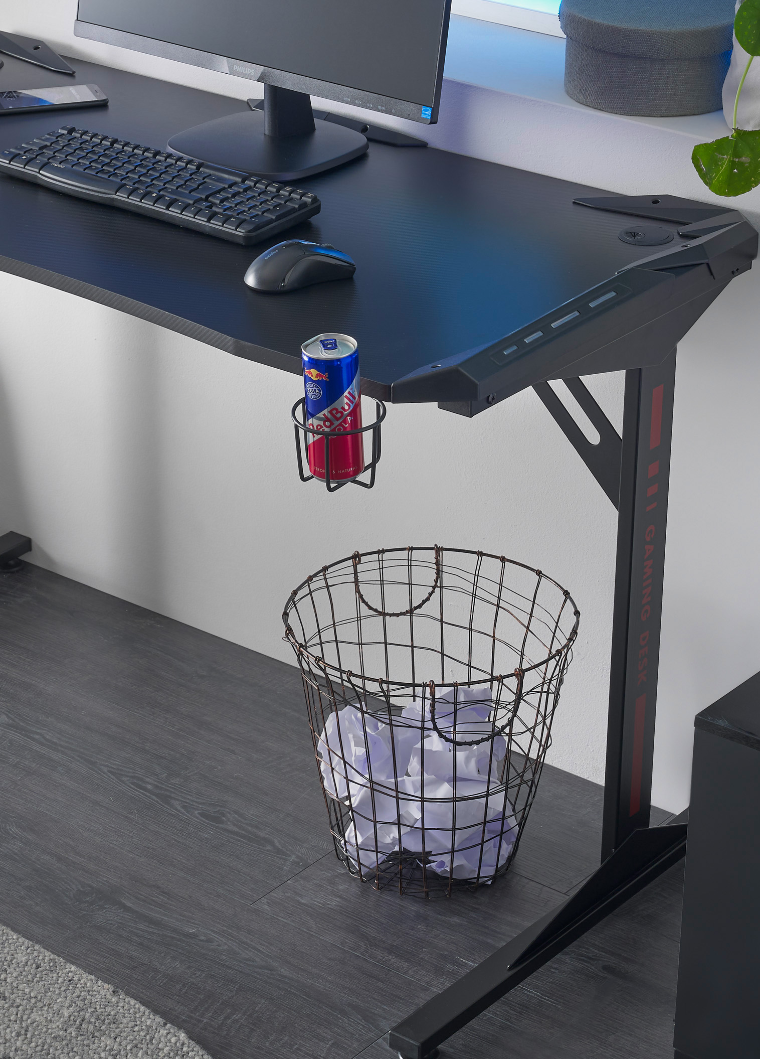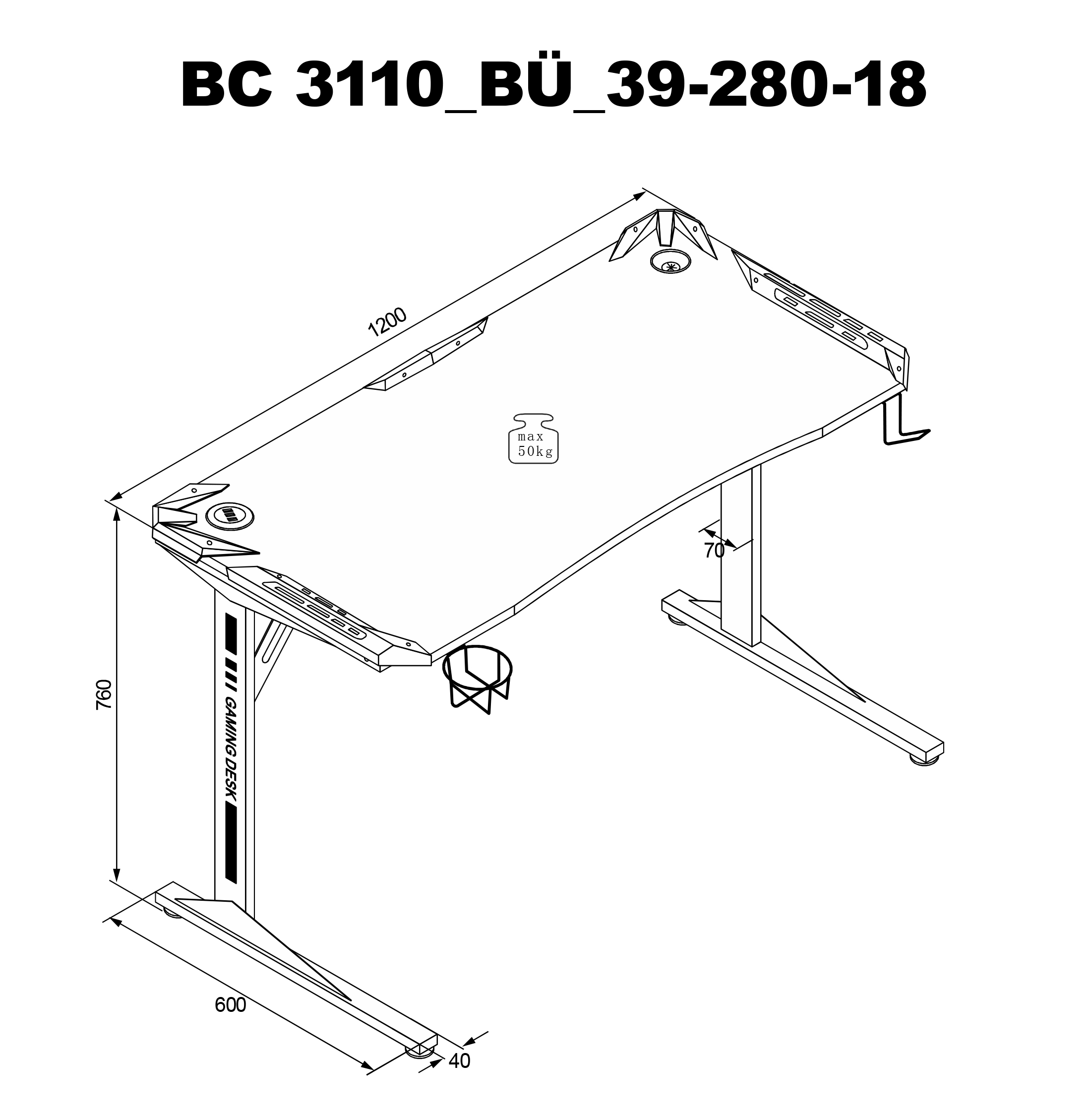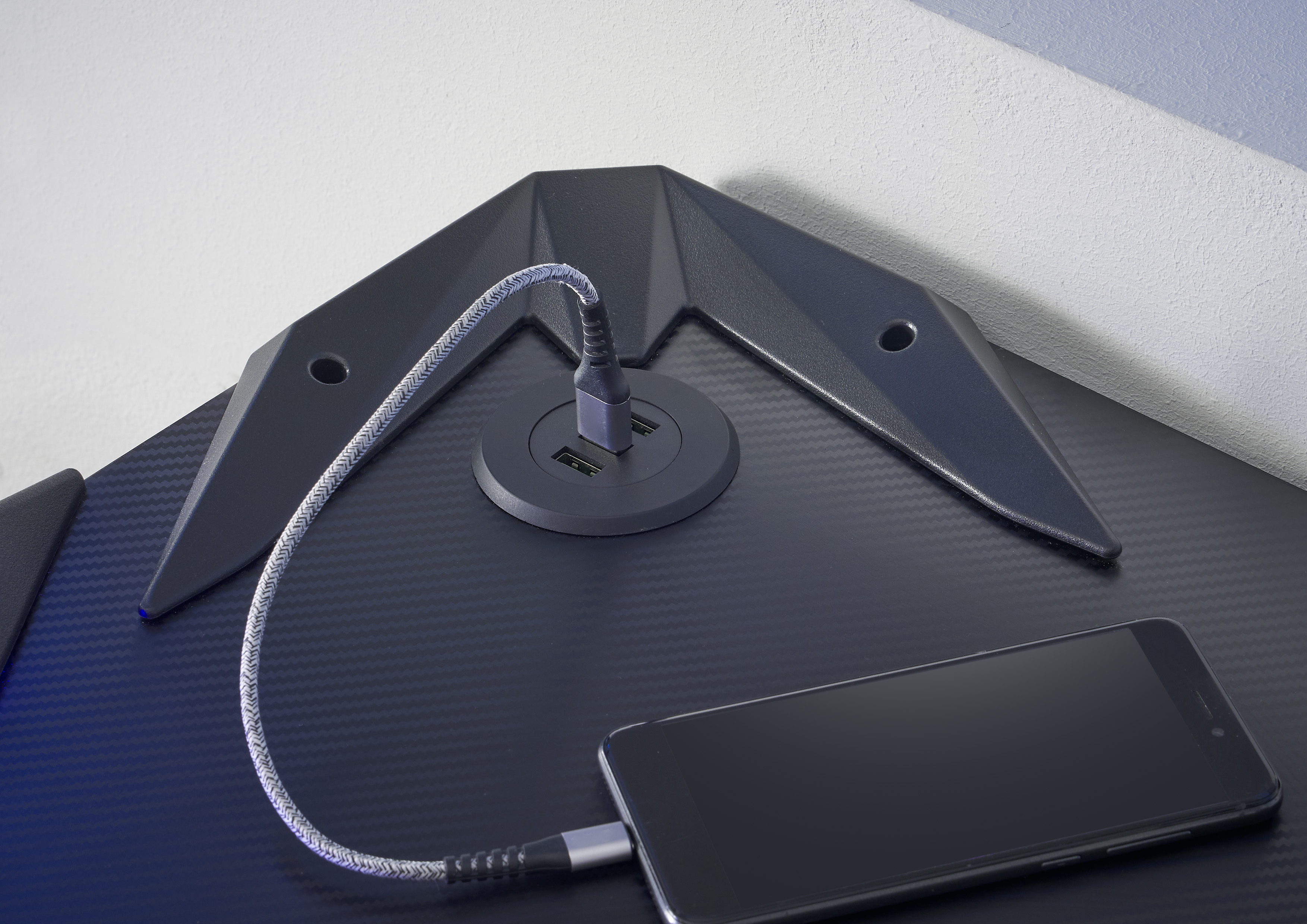 | Besonderheiten: | Beleuchtung mit Farbwechsel, Halterung für Kopfhörer, Halterung für ein Getränk, USB Station mit 3 Anschlüssen |